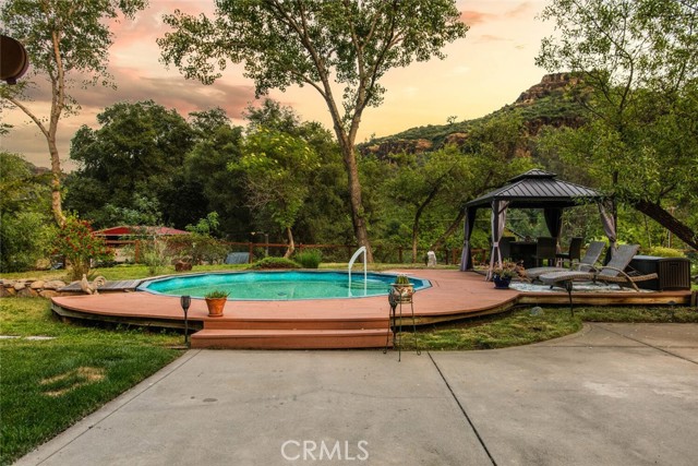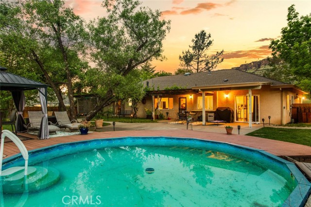 Tucked away in the scenic beauty of Butte Creek Canyon, this property offers just under an acre of peaceful, private living with breathtaking views of iconic Castle Rock. Surrounded by nature, this home is the perfect blend of comfort, updates, and outdoor enjoyment. Step inside to find an updated kitchen with laminate counters, granite sink, stainless steel appliances with hood and pantry. The family room features soaring ceilings, newer carpeting, gas fireplace and backyard view. The separate dining room is great for entertaining. The primary bathroom with tiled walk-in shower, granite counters with dual sink vanity. Thoughtfully designed for both style and functionality. Each room features plantation shutters, newer carpet and laminate vinyl plank flooring. Major improvements feature a newer well pump house, advanced filtration system, reverse osmosis system, 3000 gallon holding tank; newer heating and air conditioning; newer insulation and newer fencing provide added value and peace of mind. Start your mornings on the deck beneath the charming gazebo, where you can sip your coffee while listening to the sounds of nature and soaking in the sweeping canyon views. In the warmer months, the above-ground pool offers the perfect place to cool off and relax under the sun with filtration system. All wired with 220v for a portable whole house generator and hot tub. Whether you're looking for a serene full-time residence or a private retreat, this property delivers a rare opportunity to own a slice of canyon paradise with unforgettable views and room to breathe.
