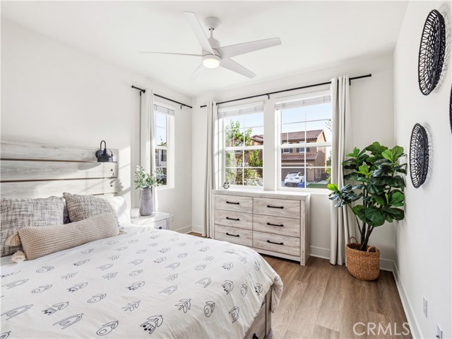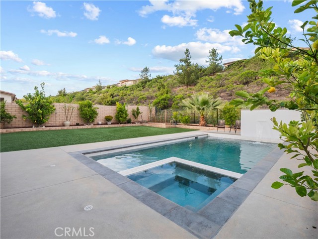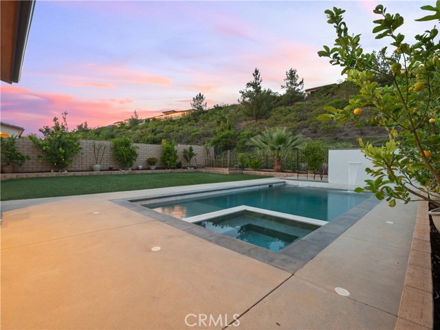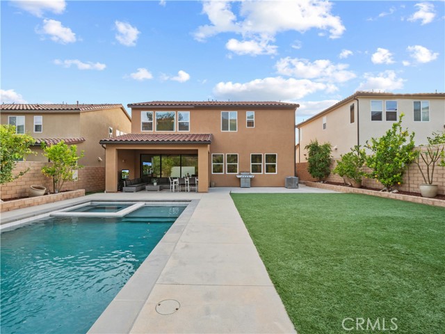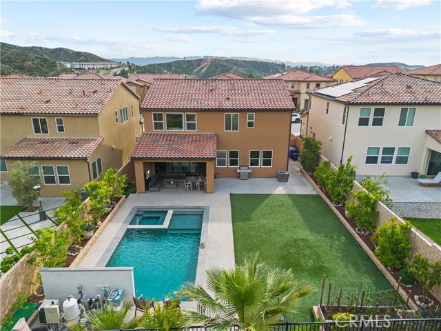 Located in Santa Clarita’s highly sought-after Plum Canyon community, this beautifully upgraded 5-bedroom + loft, 3-bathroom home offers the perfect blend of comfort, functionality, and luxury living. Step inside to a bright and open floorplan where the living room, dining area, and kitchen seamlessly flow together, enhanced by recessed lighting and an expansive sliding glass door that fills the space with natural light and creates effortless indoor-outdoor living. The kitchen features a center island with barstool seating, granite countertops, a beautiful tile backsplash, and upgraded modern cabinet hardware—perfect for both everyday living and entertaining. A convenient downstairs bedroom and full bathroom add flexibility for guests, a home office, or multi-generational living. Upstairs, you’ll find 4 additional bedrooms, including a spacious primary ensuite, a versatile loft, and a dedicated laundry room with sink. The backyard is a true resort-style retreat and entertainer’s dream—complete with a sparkling pool and spa, water feature, covered patio, spacious turf area, and approximately 15 producing fruit trees offering year-round harvest and natural beauty. Mature greenery behind the yard fence provides exceptional privacy, creating a peaceful outdoor oasis. Additional highlights include luxury vinyl flooring throughout, owned solar, an attached 2-car garage, and included appliances such as the refrigerator, washer, and dryer. Enjoy close proximity to nearby trails and Plum Canyon Park, featuring a playground, baseball and basketball courts, exercise equipment, and annual community events. Residents also have access to community amenities including a pool, spa, kiddie pool, and BBQ areas. With no Mello-Roos and a prime location near top-rated schools and Skyline Ranch Plaza—home to Starbucks, popular restaurants, a grocery store, and more—this is a rare opportunity to own a stunning home in one of Santa Clarita’s most desirable neighborhoods.