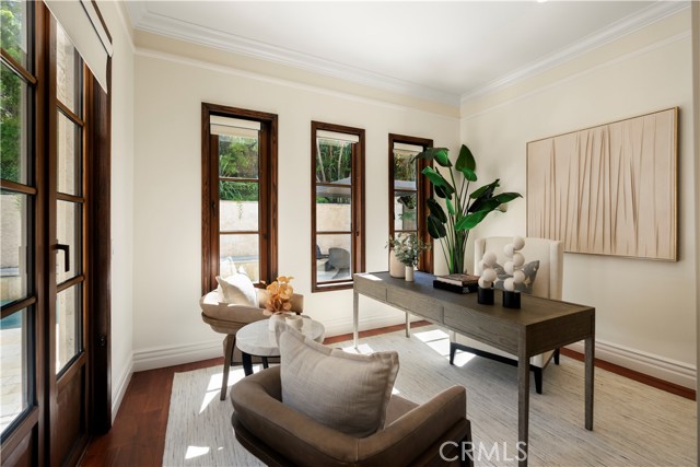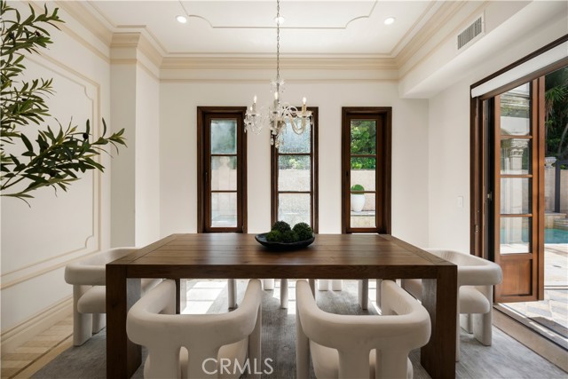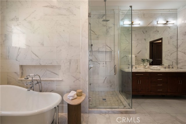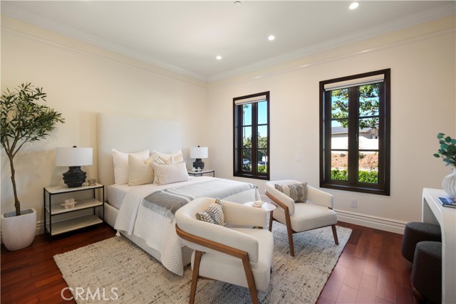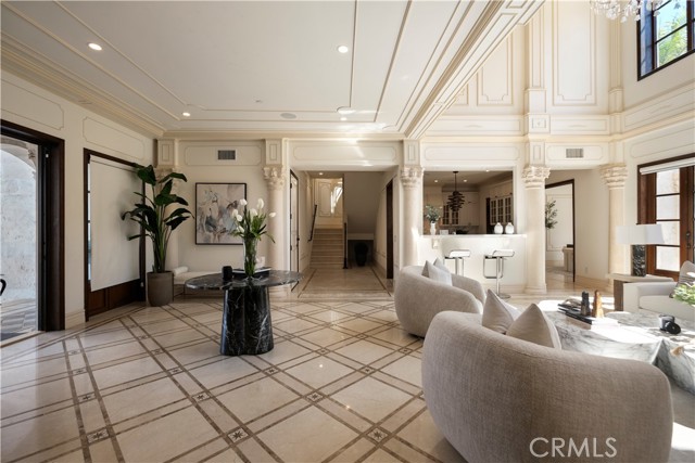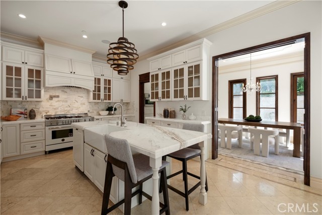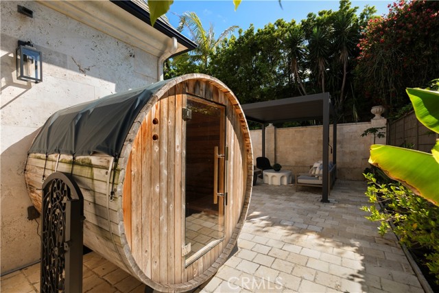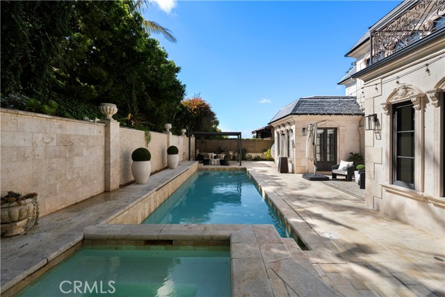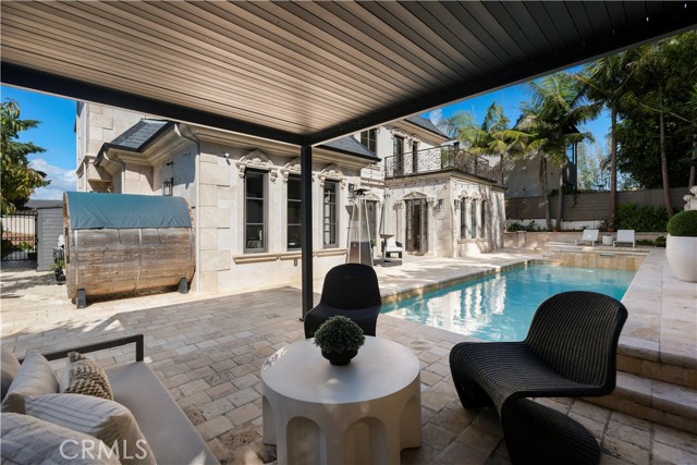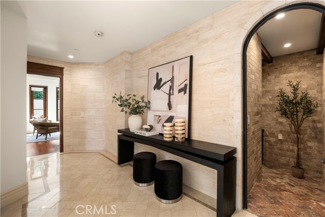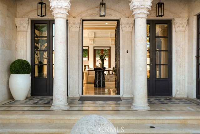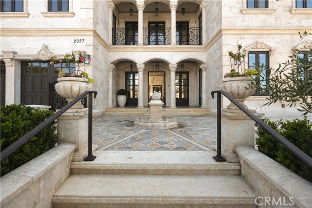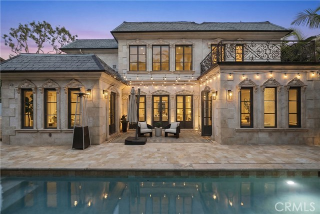 Defined by quality craftsmanship and intentional design, 2027 Santiago is a bespoke Transitional French Tudor completed in 2018. Thoughtfully designed with a refined blend of classic architecture and modern livability, the residence offers five bedrooms, including a main level junior suite, and five baths, complemented by wine cellar, upper level loft, and media room. Bright, open interiors are finished with honed Crema Marfil stone flooring, designer stone surfaces in the kitchen and baths, and imported custom doors and windows from England. The exterior showcases timeless craftsmanship, wrapped in Navona stone with Calacatta marble detailing. Designed for seamless indoor outdoor living, the private backyard evokes a resort style setting with expansive stone hardscaping, a pool and spa, and a striking symmetrical water feature that creates a true sense of privacy and distinction. Ideally located near award winning schools, premier shopping, dining, and close proximity to the coast, this home offers a balanced blend of sophistication and everyday comfort.