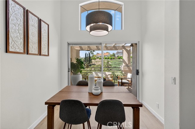Best value in one of the most beautifully upgraded homes in the Costa Brava community. Come home to breathtaking lake, sunset, and city-light views from the dining room, kitchen, primary suite, and upstairs retreat. This fully remodeled two-story residence features soaring ceilings, an open floor plan filled with natural light, and high-end finishes throughout. The living room centers around a stunning stone fireplace, while the dining area opens to a spacious patio ideal for entertaining. The remodeled kitchen features white cabinetry, stainless steel appliances, and a large picture window framing the lake view. The main-floor primary suite offers direct patio access, a custom walk-in shower, dual sinks, and a built-in closet system. A second main-level bedroom is perfect for guests, while the upstairs third bedroom (a true bedroom, not a loft) includes its own bath and closet. Additional highlights include luxury vinyl flooring, modern lighting, two single-car garages (one with direct access), and newer features throughout. Residents enjoy access to the community pool/spa and can obtain a membership at The Club at Rancho Niguel, which features pools, a gym, tennis, pickleball, and more. Convenient to top-rated schools, Laguna Niguel Regional Park, shopping, dining, and major freeways. Same model, with fewer upgrades, sold for $1,056,000 in May—this is your chance to own the best version before it’s gone.