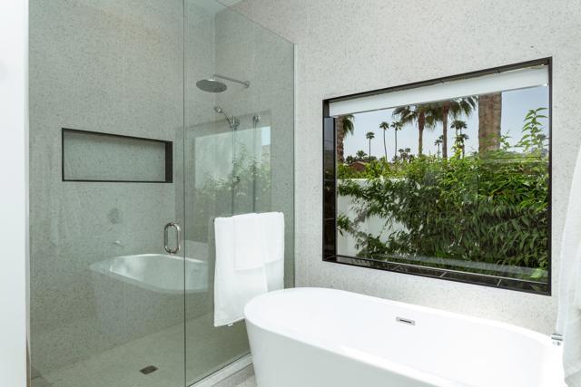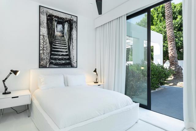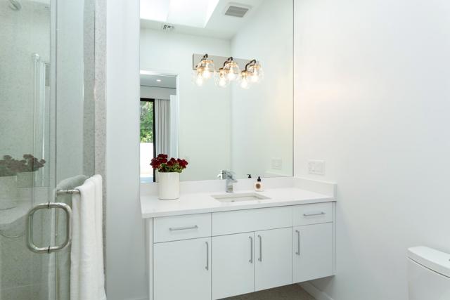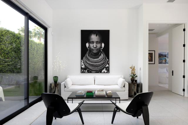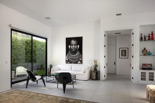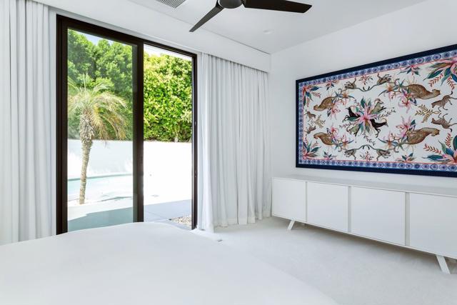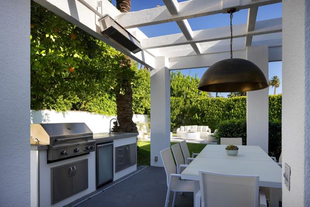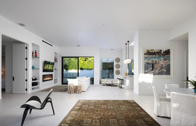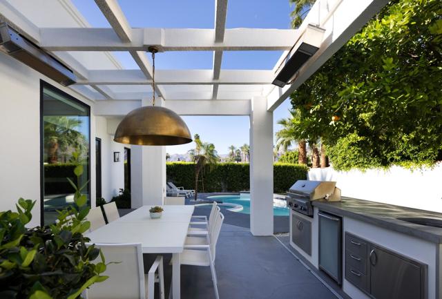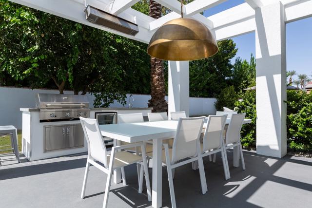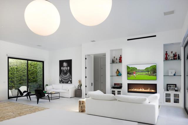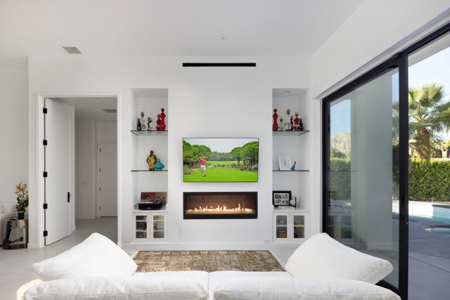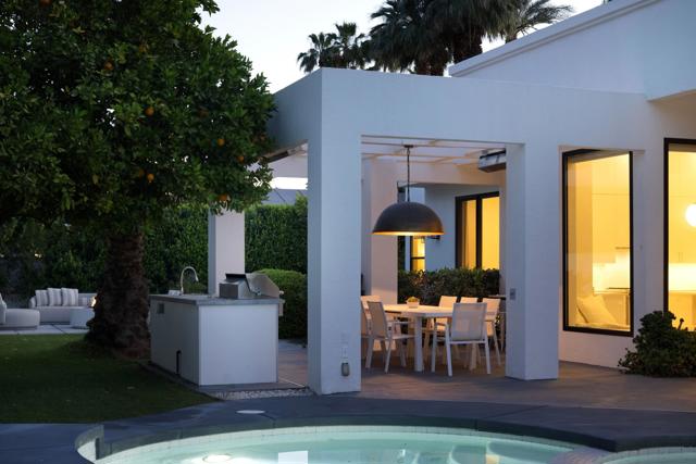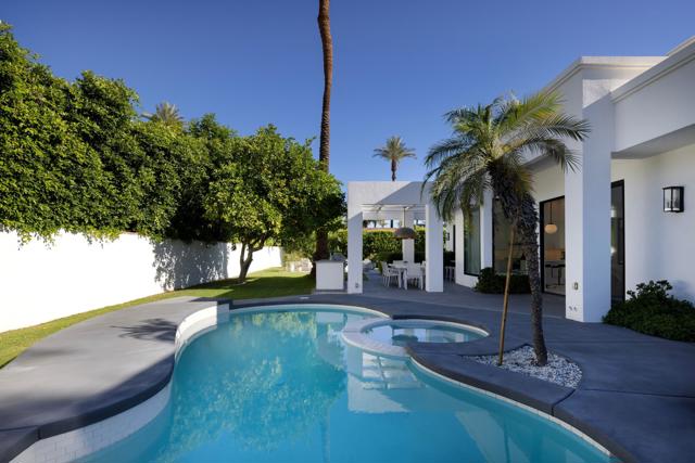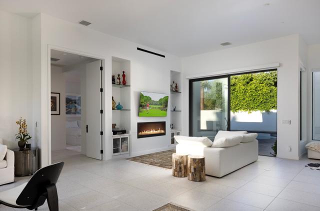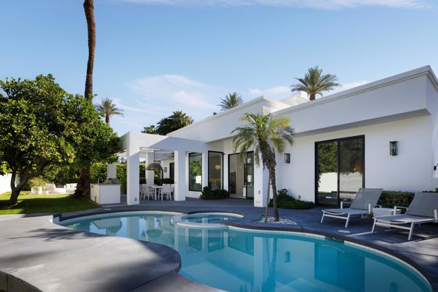 Beyond a private gated entry, this completely reimagined modern residence presents a rare opportunity to own a like-new home in one of Tamarisk Country Club's most desirable neighborhoods--offering no HOA, owned solar, and exceptional proximity to the club.Taken down to the studs and rebuilt in 2020, the home lives and feels like new construction--featuring updated systems, contemporary finishes, and a clean architectural design tailored for modern desert living. Set on a premier corner lot, the property captures expansive southern mountain views while maintaining a walled, private yard ideal for lock-and-leave ease.Walls of glass and soaring ceilings create a bright, open environment where indoor and outdoor living blend seamlessly. The main living spaces flow effortlessly to multiple outdoor areas, perfect for both entertaining and everyday enjoyment. The kitchen anchors the home with sleek cabinetry, modern surfaces, and a natural connection to living, dining and outdoor areas designed for gathering.The primary suite offers a serene retreat, complemented by two additional bedrooms (each with its own bath) and a dedicated office--providing flexibility for guests, remote work, or seasonal living. Automated window coverings enhance both comfort and privacy throughout.Outdoors, curated spaces elevate the experience: a sculpted patio, outdoor kitchen, fire feature, and overhead heaters create a year-round setting for relaxed desert living under the stars.Positioned just moments from Tamarisk Country Club, on a quiet corner parcel with privacy, views, and no HOA restrictions, this is a rare blend of new construction quality, established location, and effortless lock-and-leave luxury in Rancho Mirage.