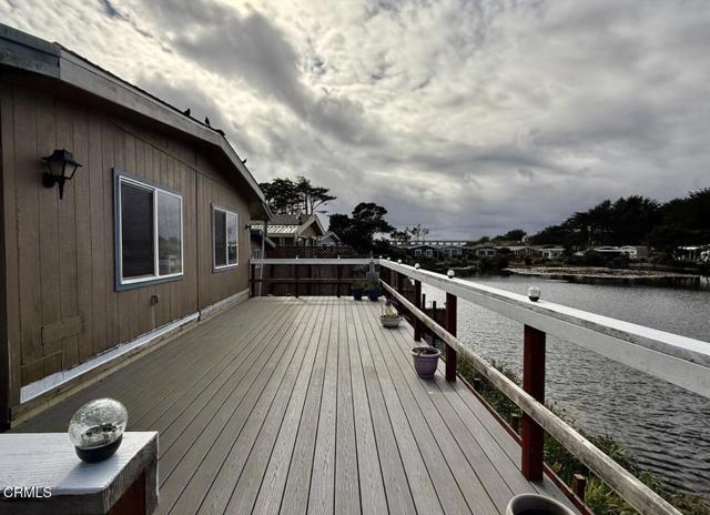Come see this beautiful 2 bedroom, 2 bathroom, 1400 sq ft home in the popular senior park.Imagine waking up to stunning lake views in this peaceful retreat. Terraced steps guide you right down to the water's edge, where you can watch the wildlife and soak in the quiet. The home features a nice open floor plan with washer and dryer hookups. Though serene, you're only minutes from the ocean and coastal trails.Step outside each morning onto the 12x24 fiberglass deck, completed just 3 years ago. It's the perfect perch to enjoy your morning coffee or an evening sunset. Come view this home today!
