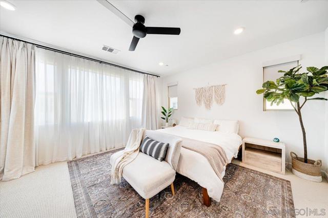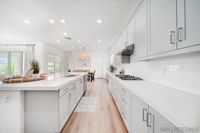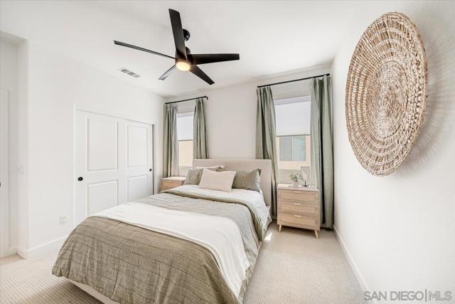 Welcome to luxury living in the premier enclave of Parkside @ Mission Circle in San Marcos, where modern design meets everyday comfort in an exclusive newer neighborhood. This beautifully crafted 5-bedroom, 4.5-bath stunner elevates style at every turn, featuring 10-foot ceilings and stunning designer finishes throughout. Wide-plank designer flooring sets a sophisticated tone, while custom window blinds add a tailored, upscale touch to every room. At the heart of the home, the chef-inspired kitchen offers abundant counter space and exceptional cabinet storage, designed to keep everything organized while still feeling open, bright, and inviting. Whether you’re hosting gatherings or enjoying a quiet night in, this space effortlessly blends function and elegance. The primary suite is a true retreat—generously sized and thoughtfully designed for relaxation. The spa-like primary bathroom invites you to unwind with luxury finishes, while the expansive walk-in closet is a showstopper in itself, featuring a custom-installed closet system and more storage than you could dream of. Additional bedrooms are well-appointed, offering flexibility for guests, family, home offices, or creative spaces. Every corner of this home has been designed with comfort and livability in mind. Step outside to a beautifully curated backyard featuring custom landscape design, easy maintenance greenery, and a built-in play structure perfect for endless fun and imagination. Garage has soaring ceilings w/ built-in storage cabinets & over head storage. Owned SOLAR, Two 220 outlets in garage for EV's. Upgrades!