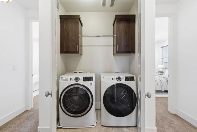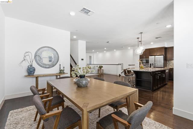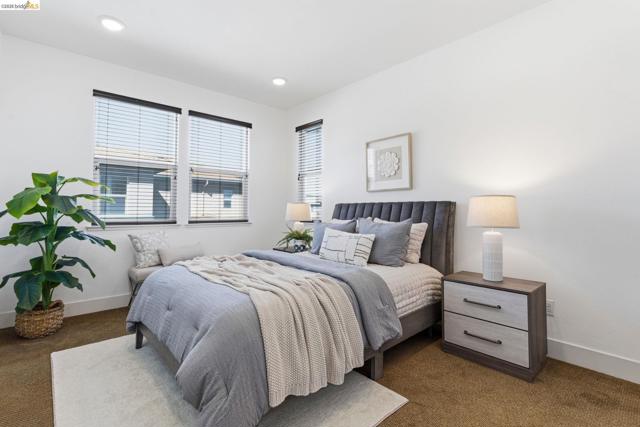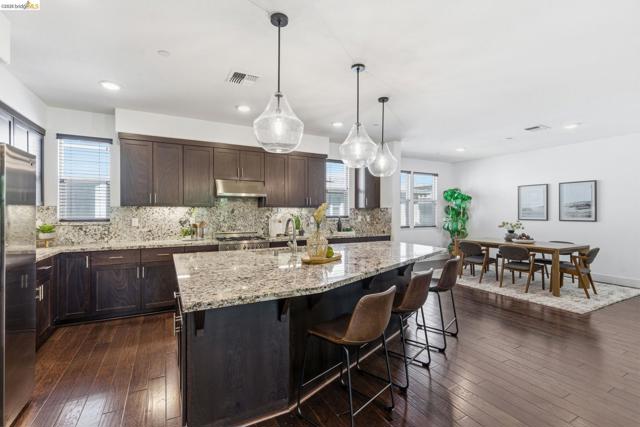 Step into luxury living spanning an impressive 2,303 sq ft across three thoughtfully designed floors, this rare 4 bed, 3.5 bath Alameda Landing residence delivers the space, style, and sophistication of a single-family home with all the ease of modern condo living in a desirable location with great schools, shopping, parks and views of the San Francisco bay nearby. A level-in entry with an en-suite bedroom sets the tone for flexibility and function — perfect for a home office, guest suite, or multi-generational living. Upstairs features an open concept layout for effortless flow between the dining room, living room, half bath, and a to-die-for kitchen that will instantly make you salivate. Access the breezy balcony for entertaining directly from the living room. The sun-drenched top level offers a thoughtfully placed laundry closet, two generously sized secondary bedrooms, a full bathroom, and spacious primary suite with walk-in closet, en-suite bathroom, and private balcony. Park your car in the garage and embrace city life with the complimentary BART shuttle, the nearby ferry terminal, the free water taxi, and multiple AC Transit bus lines putting the entire region at your fingertips. In Alameda Landing, you truly get the best of all worlds. Come see it. You'll want to stay forever.
