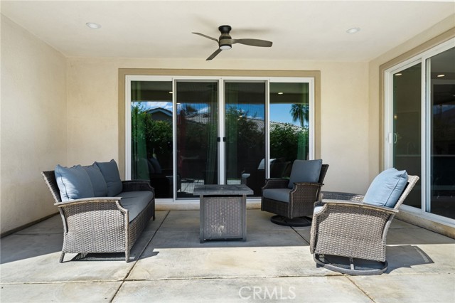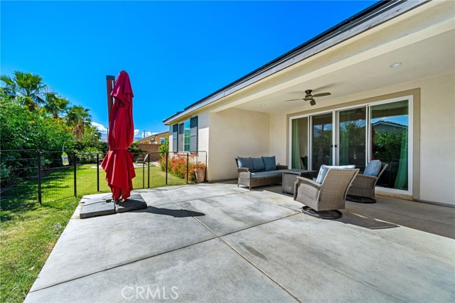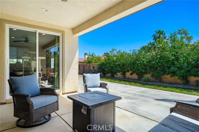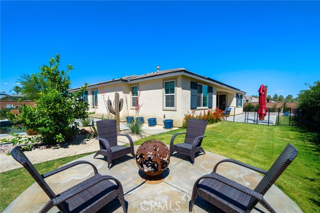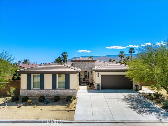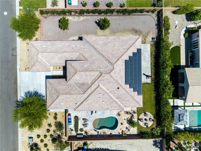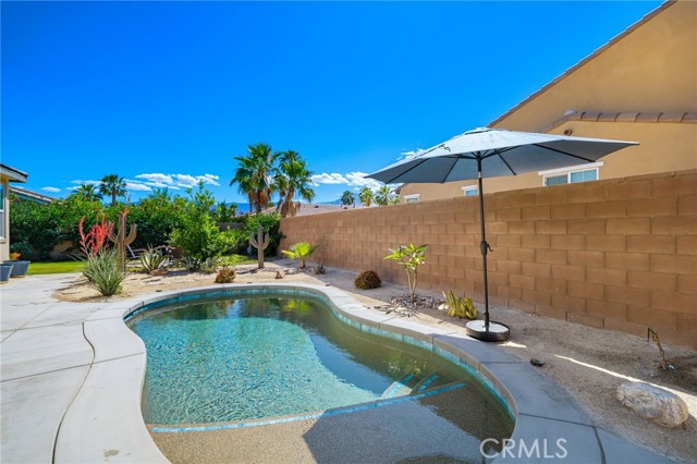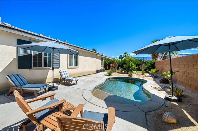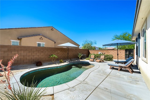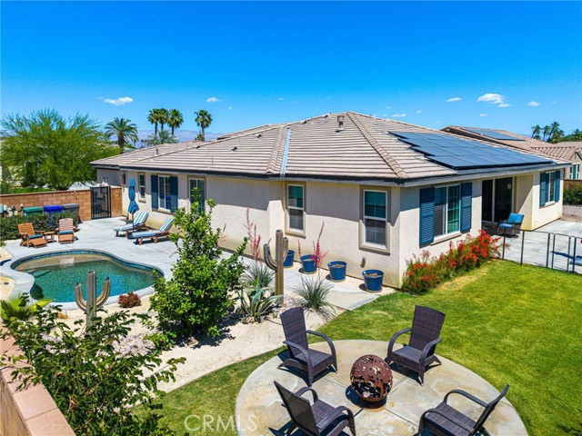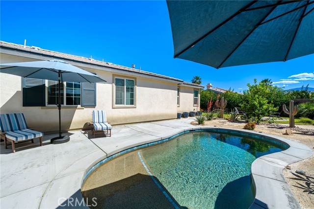 Experience elevated desert living in this beautifully upgraded Pomona plan, where modern ranch design meets a private La Quinta oasis. Situated on over a quarter-acre lot, this home offers exceptional space, privacy, and expansive side yards—perfect for entertaining, recreation, or future enhancements. At the heart of the home is a stunning, modern chef-inspired kitchen featuring an oversized center island, sleek quartz countertops, and a generous walk-in pantry. The open-concept design flows effortlessly into the expansive great room and dining area, creating an ideal setting for both everyday living and upscale entertaining. The primary suite is a true retreat, complete with a spa-like bath and two spacious walk-in closets. Three additional bedrooms, along with a private office, provide flexibility for guests, family, or a home office. Step outside to your own private sanctuary—an entertainer’s dream—highlighted by a sparkling custom-shaped pool, a spacious covered patio, and beautifully curated desert landscaping that enhances both serenity and style. Located within a gated community, this home also features a three-car garage with a private side-entry bay, ideal for a golf cart, workshop, or additional storage. Adding even more value is the fully owned and paid-off solar system, delivering energy efficiency and long-term savings. This move-in-ready residence offers the perfect blend of luxury, functionality, and the quintessential La Quinta lifestyle.