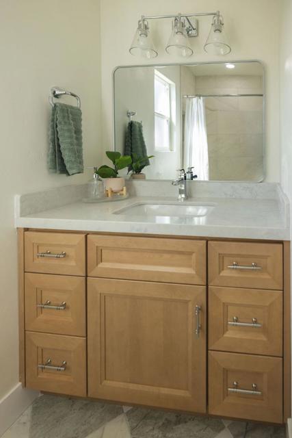 Renovated homes are nothing new in Seaside, but 1460 Mescal Street stands out. Set in arguably Seasides most coveted neighborhood, in a sunny, walkable enclave, this property offers a rare combination of privacy and space, with no neighbor to the left or behind and a lot of over a quarter acre. Recent exterior improvements include concrete work, a new driveway, a front retaining wall, and floating concrete steps. Inside, LVP flooring runs through the living room and bedrooms, while large-format tile finishes the kitchen and bathrooms.The kitchen features warm wood cabinetry, marble countertops, polished brass hardware, and all-new stainless steel appliances. The open layout flows into the dining area, where a stacked stone fireplace with a wood mantel creates a focal point. The bathrooms continue the homes polished aesthetic, including an updated shower finished in glossy seafoam green tile with warm brass fixtures. Beyond being move-in ready, the property also offers room to grow and shape the outdoor space thanks to the lots size and usability. With municipal water service, that flexibility becomes even more valuable. This combination of renovation, privacy, lot size, and potential rarely comes available in Seasides Upper Mescal neighborhood. Come see it before its gone!