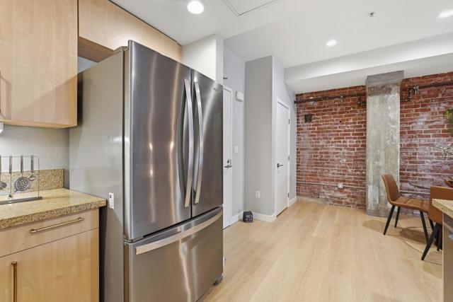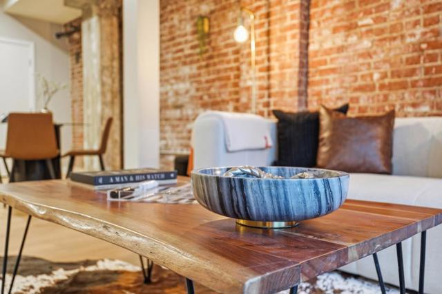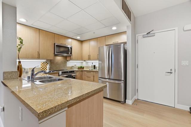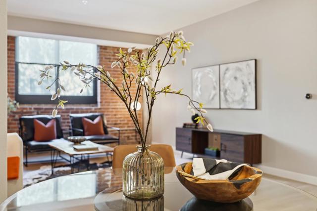 Brick-and-Beam stylish first floor, one level easy living in this thoughtfully updated one bedroom, one bathroom home centrally located by the elevator, lounge, and gym. Featuring striking industrial beams and original brick walls, the space blends character and comfort seamlessly flowing with brand new Cedar LVP flooring throughout the home. Mid mod lighting and brushed bronze hardware add touches of elegance. The kitchen is upgraded with SS appliances including a striking new induction range and new dishwasher, offering both efficiency and modern appeal. Enjoy a full suite of amenities including a BBQ area, fire pits, dog run, bamboo groves, bike lockers with work bench, conference room, Amazon lockers, community storage, and EV charging. Ideally situated near Diridon train station, Whole Foods, Cahill Park, SAP Centre, and the tech corridor with easy access to highways 880, 87, and 280, this home delivers convenience, style, and an active luxurious urban lifestyle.