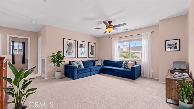 Tucked into a quiet neighborhood, this well-maintained home offers a thoughtful layout, comfortable living spaces, and an easy indoor-outdoor flow, complete with a solar panel system for added efficiency. It sits on a 9500sf lot, one of the largest in the area. Step inside to an inviting living room with three windows bringing plenty of natural light. The open-concept design connects seamlessly to the dining area and spacious kitchen, where ample cabinetry, generous counter space, and a functional layout make everyday living and entertaining feel effortless. A separate family room anchored by a fireplace and large sliding doors provide an additional gathering space, perfect for relaxing, hosting, or creating a cozy media retreat. Upstairs, a versatile loft offers flexibility for a home office, playroom, or additional lounge area. The bedrooms are well-sized, and the overall floor plan provides both openness and privacy where it matters most. The backyard features a covered patio and room to personalize, ideal for outdoor dining, gardening, or simply enjoying Southern California’s year-round weather. Complete with a 2-car garage and a layout designed for both comfort and functionality, this home presents a great opportunity to settle into a space that feels both practical and welcoming.