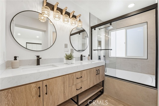 Located in a quiet cul-de-sac, this beautifully upgraded and fully renovated two-story home offers a resort-style backyard with a pool and spa. Major improvements include a brand new AC system, new windows and doors, and a full repipe—all completed with city permits. This high-end home showcases thoughtful upgrades throughout and has been fully remodeled, with a brand new kitchen featuring quartz countertops and high-end appliances, brand new bathrooms, new flooring, and fresh interior and exterior paint. It also features new interior doors, a modern iron front door, a brand new staircase with sleek iron railings, and a garage with a brand new epoxy floor. Recessed lighting shines in every room. The main level offers an open-concept layout with a spacious living room, dining area, breakfast nook, and Sliding and folding doors open to the backyard oasis. Upstairs, you’ll find three bedrooms, including a luxurious primary suite with a walk-in closet and dual-sink vanity. The front yard features fresh landscaping and lush greenery with an iron gates, while the backyard is a true retreat, with new landscaping, a gazebo, pool, spa, fountain, and slide. This home is just a few steps away from a beautiful park and minutes from top-rated schools, shopping, dining, and entertainment, this is a low-HOA home you don’t want to miss.