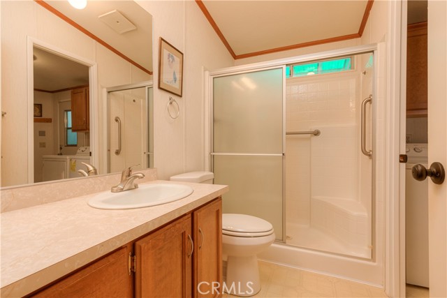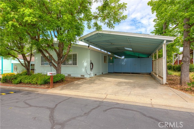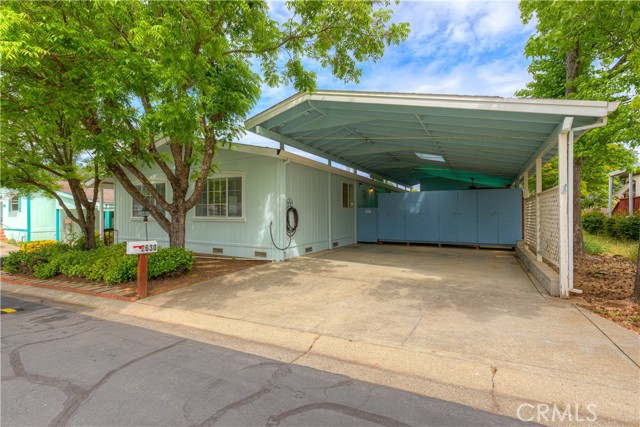 Carriage Manor! Own your own lot in this park, and enjoy the community clubhouse, swimming pool, and RV/boat storage! Beautifully landscaped with mature trees. HUGE covered carport with an amazing amount of convenient storage space. This home also includes an incredible detached workshop/hobby room, junior ADU with a quarter bath for convenience! Lots of cabinets, counter space, and natural light. The house has a delightful floor plan with main living area, dining room, family room, and a beautifully appointed kitchen with plenty of storage. The huge master bath is a special treat with a large soaking tub, separate shower, and two vanities. Let's not forget that both bedrooms have walk in closets! The laundry room is large with a wash basin sink, a wall hanging iron board and so much more. This home has been maintained with lots of care and all items addressed are located for viewing in the supplements.
