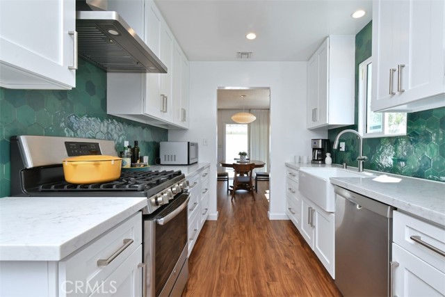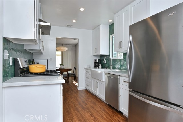 Located on a charming tree-lined street, this inviting home offers the perfect blend of modern amenities and classic appeal. Offered for the first time, this home has been lovingly owned by the same family for generations and has never before been on the market. The spacious living room features an expansive picture window framing serene backyard views, an ideal setting to relax and unwind. The living area flows seamlessly into the dining space, where sliding glass doors fill the home with abundant natural light and provide easy indoor-outdoor access. Designed to impress, the chic and sophisticated gourmet kitchen is a chef’s delight, showcasing quartz countertops, Zellige tile backsplash, farmhouse sink, stainless steel appliances, and a convenient eating area, all beautifully accented by luxury vinyl flooring throughout. The primary bedroom is conveniently situated and features a large closet, window shutters, and an attached bathroom with a walk-in shower. Three additional bedrooms complete the home, served by a classic full bathroom, while the front bedroom includes its own private half bath, ideal for guests or a home office. Perfect for enjoying sunny California weather, the expansive private backyard offers endless opportunities for outdoor living and entertaining. Ideally located within the highly regarded Kester Elementary School district and close to local freeways, shopping, restaurants, and recreation, this home is nestled in a truly fantastic neighborhood. Don’t miss this wonderful opportunity to call 5822 Norwich Ave. home!