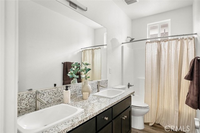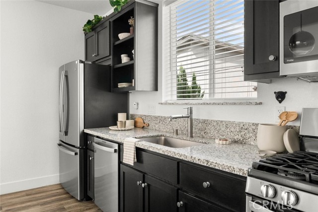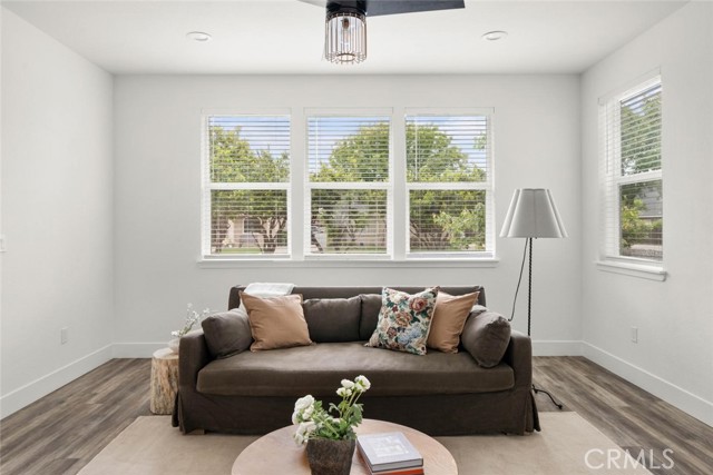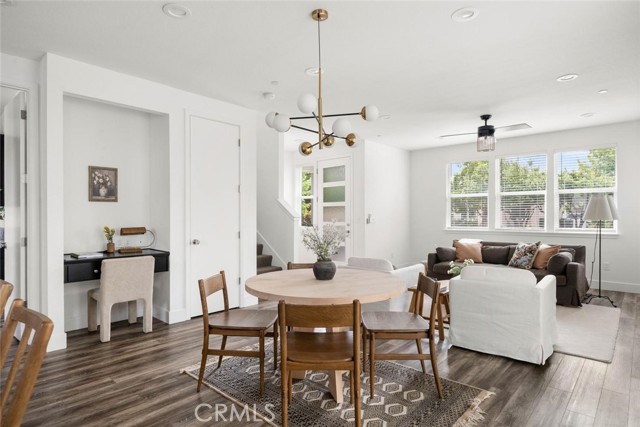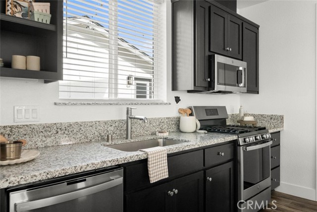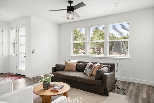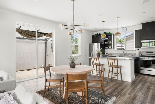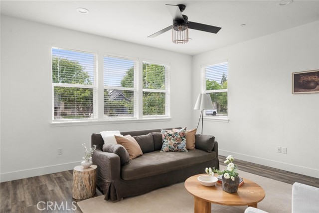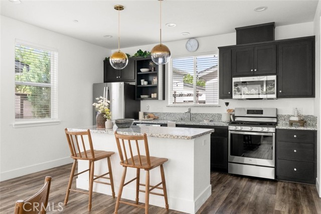 Contemporary 3-bedroom, 2.5-bathroom home in Meriam Park, minutes from Bidwell Park, Meriam Park's retail and dining corridor, and downtown Chico. This open-concept, two-story home features lightly painted walls, recessed lighting, ceiling fans throughout, and mini-split systems for room-by-room climate control. The kitchen includes granite countertops, wood cabinetry, stainless steel appliances, a gas range, and a center island with breakfast bar seating, open to the main living area. Upstairs, the primary suite offers a walk-in closet, private balcony, and en suite bathroom with dual sinks and a walk-in shower. Two additional guest bedrooms share a full bath and provide flexible space for family, guests, or a home office. The detached two-car garage includes extra storage, and the back patio offers dedicated outdoor space for entertaining or relaxing.