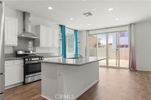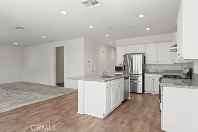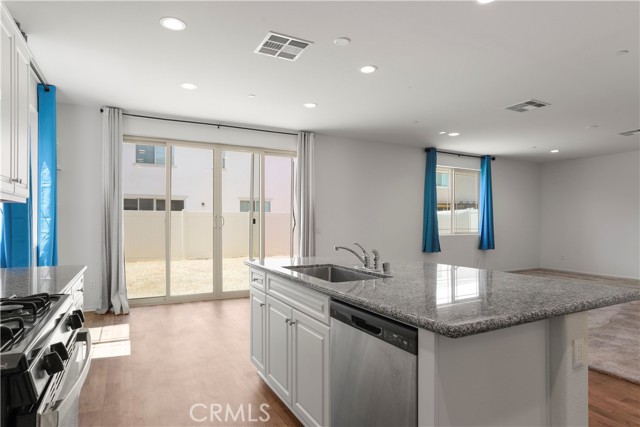 Located in the Seasons at Green Valley Ranch, this 4 bedroom, 3 bath home has been upgraded throughout. An open concept-kitchen and family room features an island kitchen with granite countertops, gas range, vent hood with backsplash, and vinyl flooring. Down the hall, you'll find a bonus room that can be used as an office or potential bedroom (no closet), and a full bath. Upstairs, you'll find 4 more bedrooms, including the master bedroom suite, and 2 more full baths. The master suite features a large bathroom and walk-in closet. Laundry room is also located upstairs in addition to a spacious loft. The property includes a variety of green energy features, including energy-efficient windows and appliances, water-saving front landscaping, and a tankless water heater!