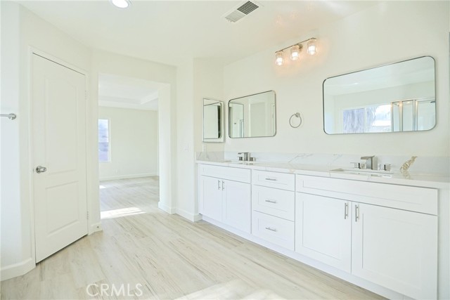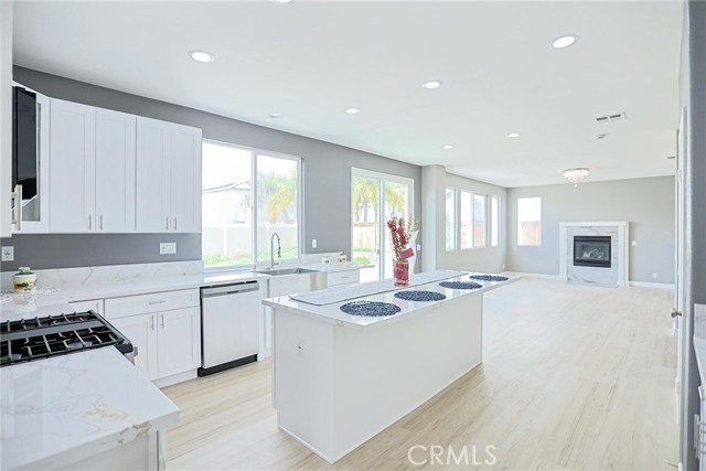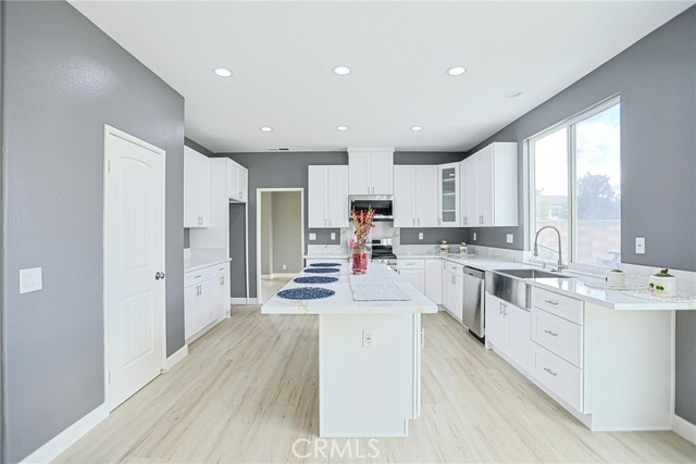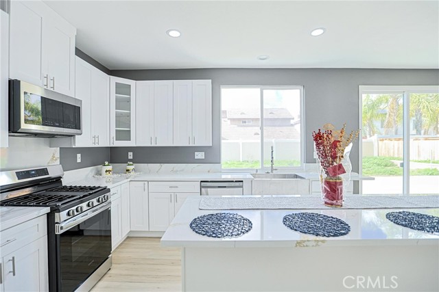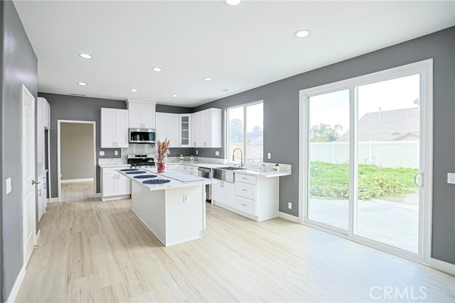 Menifee South beauty! Located at the corner lot on a cul-de-sac street. Complete renovation of a 4-bedroom, 4-bathroom two-story home. Fully upgraded with premium features: Cathedral ceilings, a kitchen with new cabinets, stainless steel appliances, quartz countertops, a walk-in pantry, and a large island suitable for dining and socializing. Separated family room, dining room, and living room. New laundry room. New vanities and quartz countertops throughout the house. Beautiful new floor, new paint inside and outside. One bedroom and one bathroom downstairs. New fireplace in the family room and master retreat. The upstairs loft can be a fifth bedroom. Three-car garage with ample space and storage, plus a large driveway for extra vehicles. The property looks like a new house. A must see! Contact us today to schedule a viewing and experience this stunning home firsthand!