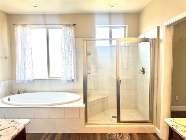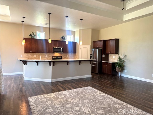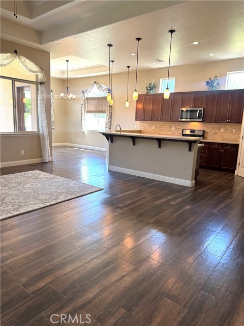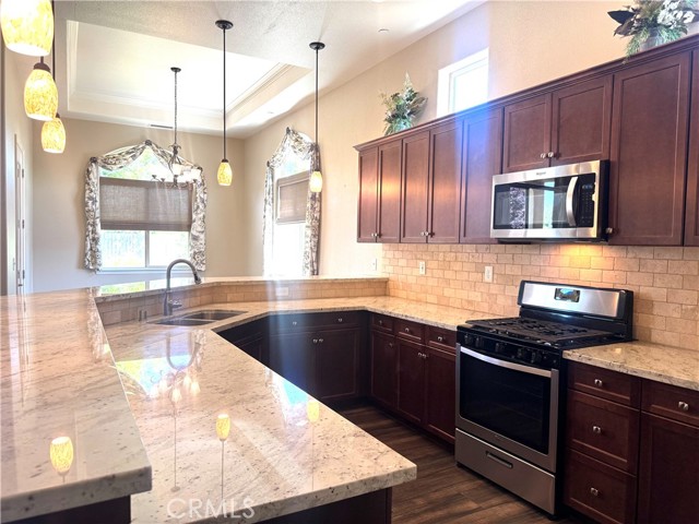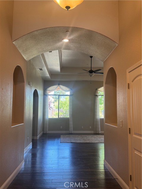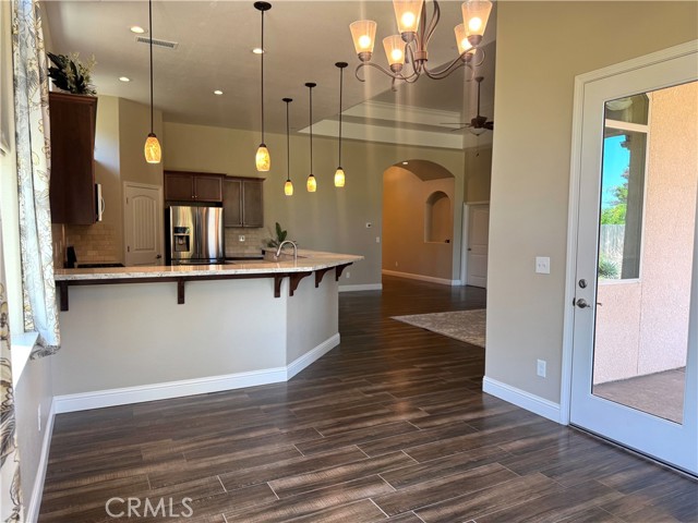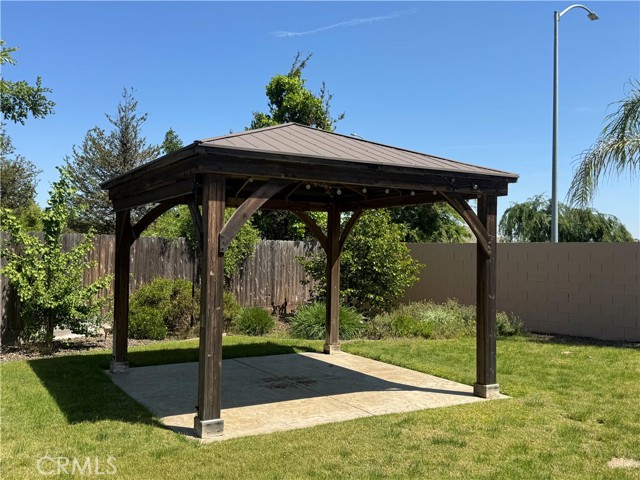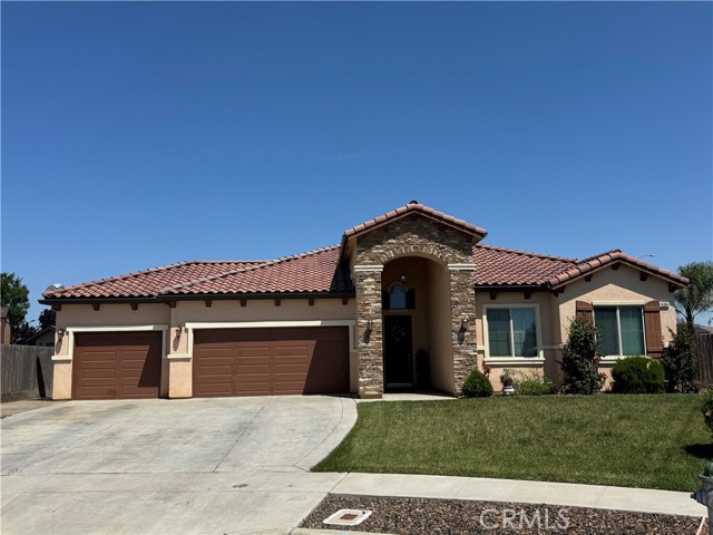 Beautiful, spacious 2267 SF home built in 2018 by Crown Homes. This turn key home has been lovingly cared for. Elegant wood look ceramic plank tile flooring, granite counter tops and tile work, large breakfast bar, open floor plan and extra large backyard with room for a pool. Spacious kitchen with a lot of cabinetry for storage, walk-in pantry and ample counter space to cook and entertain to your hearts content. High ceilings with tray ceiling details. Beautiful windows keeps the home bright and and full of natural light. Featuring 4 Bedrooms and 2 Baths. Primary Suite is quite roomy and En Suite bathroom is larger with dual vanities, walk-in glass shower, roomy, custom soaking tub and walk-in closet. Great lot size and shape at the end of a cul-de-sac and has had a lot of cement work and some is upgraded stamped concrete. Home features a three car garage and large driveway. Lot is fully landscaped in the front and back with mature plants and trees. Park like setting with large gazebo. Nice and quiet neighborhood. Bedroom community to Fresno and Madera, live in the country and commute to work in the city. Metal yard art, potted plants and floor rug not included. Convenient distance to shopping, restaurants and schools. This home is a must see and may sell quickly. Don't Miss Out.....Call today to schedule your showing!