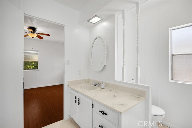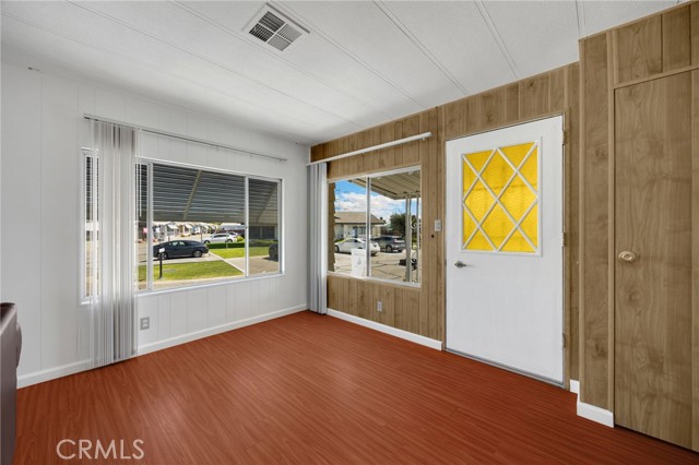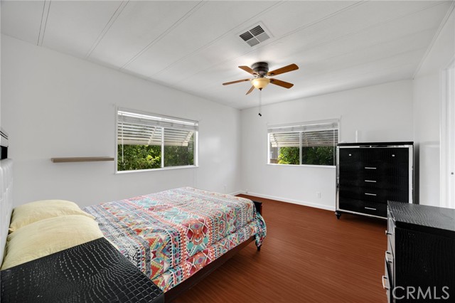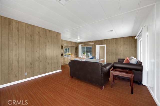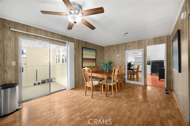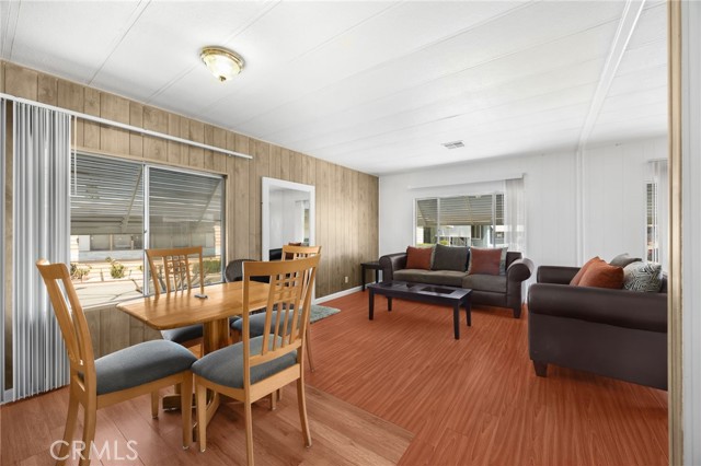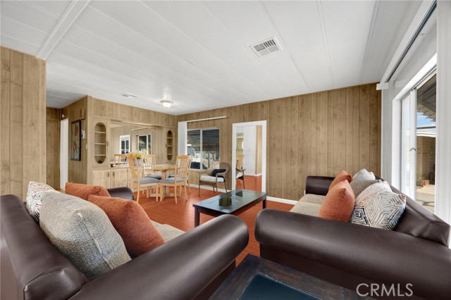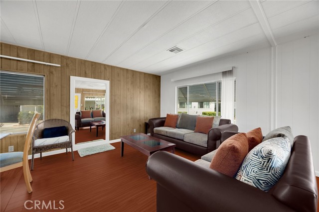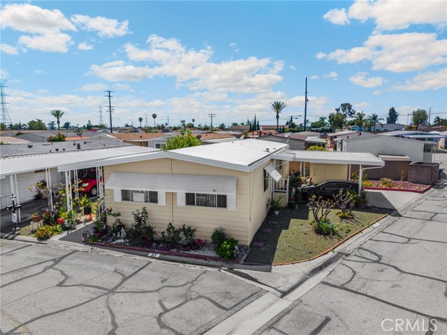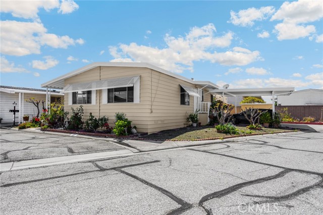 Lovely Villa Nova Mobile Home Park Senior 55plus. Come see this Lovely 2b 2b 1440 sqft home . Move in ready. This is a corner home facing the club house with ample parking for guest. The home does have 2 parking spots on the side of the home. Step up into a small landing front porch, you can add plants or some chairs for those summer evening. Walk into the living room with laminate flooring, and a dinning area with a built in Hutch. The kitchen is open with plenty of cabinets and another dinning area or could be a lounge area to relax and watch your favorite TV show. A sliding door out to the enclosed patio for those wanting some privacy for reading or a nice gathering of friends for entertaining. Adjacent to the kitchen is the Laundry room with washer and dryer, then to the back door out to the side yard and parking. There is a Handicap ramp if needed, is Permitted. Guest bedroom 1, a good size with Large closet and its own bathroom with shower. 2nd master bedroom, a very good size, has a large closet, and its own large bathroom and walk in shower. This home has new inside and outside recent painting. lots of beautiful plants and lemon tree. A good size storage for your garden tools. Home has central heat and cooling. Ceiling fans in both bedrooms, and lounge area. Carbon monoxide and smoke detectors in place. Entertainment at the club house and good size pool. Conveniently located to Shopping, and church, hospital and freeways. A must see.