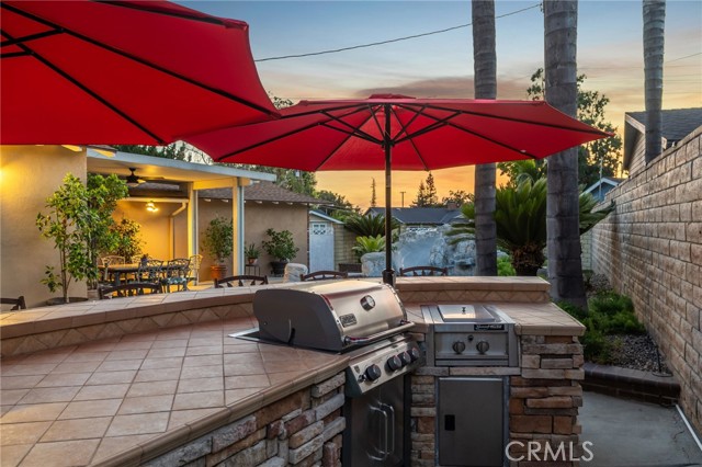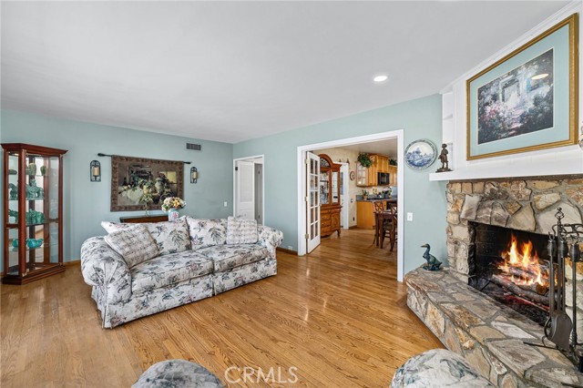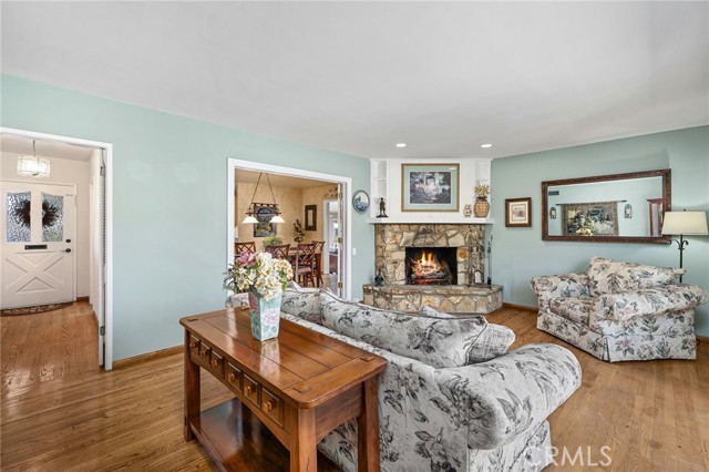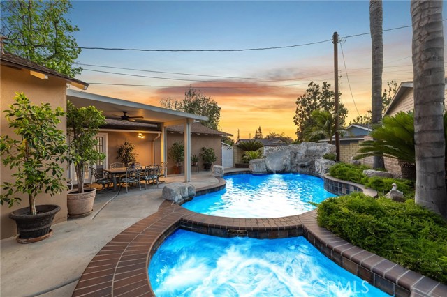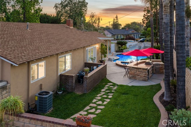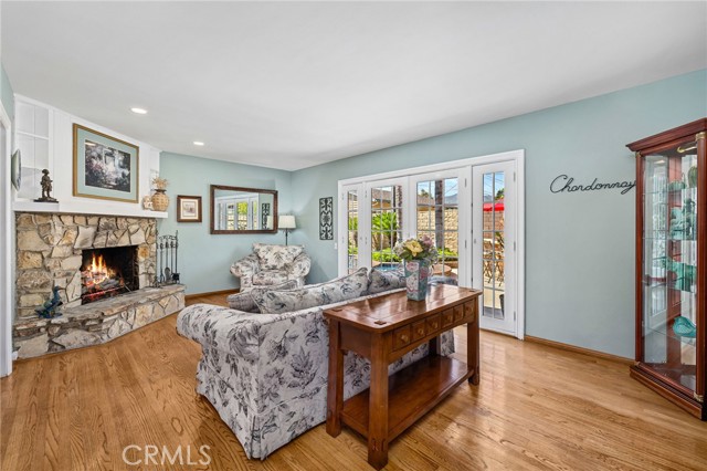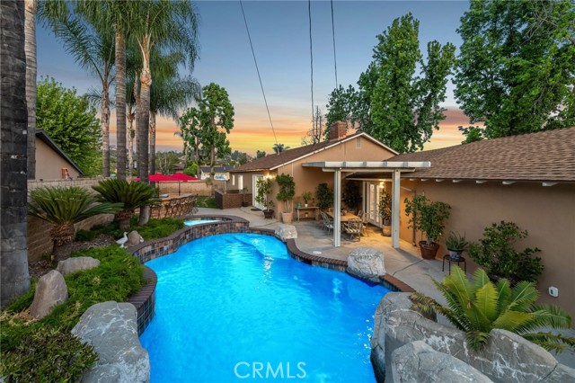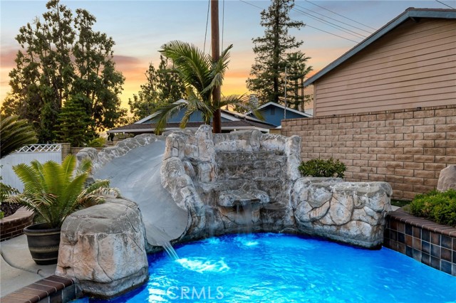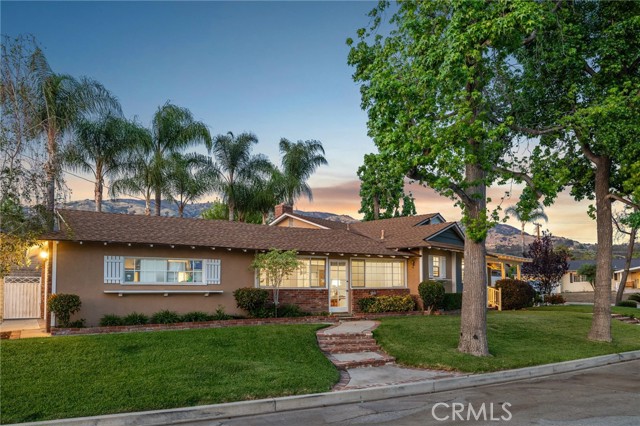 CORNER LOT RANCH HOME WITH MOUNTAIN VIEWS, RESORT STYLE BACKYARD, AND TRUE ENTERTAINING POTENTIAL IN THE HEART OF GLENDORA. Situated on an oversized corner lot just south of Foothill and within walking distance to Glendora High School, this home offers standout curb appeal with lush landscaping and mature Liquid Amber trees surrounding the property, providing privacy and maintained by the city. A covered front porch completes the exterior, perfect for enjoying mountain views. Inside features rich hardwood flooring, abundant natural light, and a functional layout with 3 bedrooms and a full hallway bathroom with tub. The primary suite includes a remodeled bathroom with walk-in glass shower, custom tile, and stone vanity. Upgraded custom glass mirrored closet doors are featured throughout. The kitchen offers built in wine racks and flows into the dining area, creating a central space for daily living and entertaining. French doors open to a formal living room with fireplace and direct backyard access. Just off the kitchen is an indoor laundry area, pantry storage, and a convenient half bathroom. A major bonus is the approximately 400 square foot fully permitted enclosed breezeway, ideal for a game room or second living space, with direct access to the backyard, attached two car garage, and a spacious driveway with potential RV parking. The backyard is a private retreat with a custom rock pool, slide, waterfall, and raised spa. Covered patio seating, a built in BBQ island with bar seating, mature palms, and additional grassy yard space create multiple areas for relaxing and entertaining. Additional upgrades include a brand new HVAC system installed this year. With its prime location, oversized lot, and resort style outdoor living, this home delivers a lifestyle rarely found in this market.