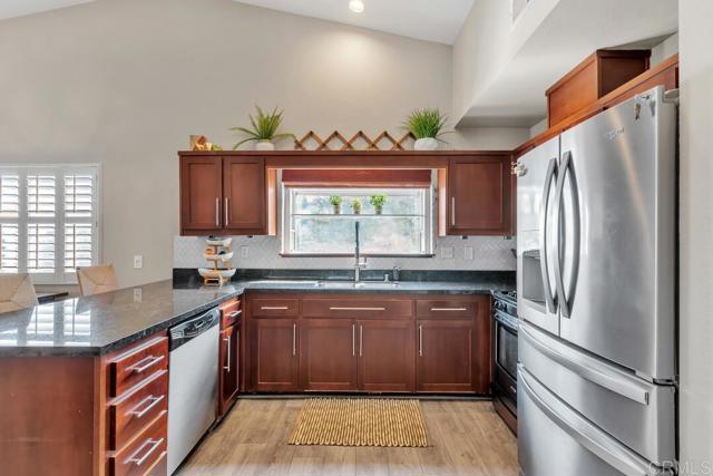 This beautifully maintained single-level home checks every box: 3 bedrooms, 2 bathrooms, 1,482 square feet, and a generous 11,325 sq ft lot that gives you space, privacy, and room to breathe — all just minutes from the heart of La Mesa Village. Step inside to soaring vaulted ceilings, an abundance of natural light, and a thoughtfully updated interior featuring new luxury vinyl plank flooring throughout, granite countertops, stainless steel appliances, shutters, and fresh finishes throughout. The primary suite is a true retreat with direct backyard access, making indoor-outdoor living effortless. Out back, a large deck with sweeping views sets the stage for entertaining, morning coffee, or simply unwinding after a long day. The low-maintenance, drought-tolerant landscaping with artificial turf keeps your weekends free — and the owned solar keeps your utility bills even freer. The attached 2-car garage offers plenty of storage, and easy freeway access means you're connected to all of San Diego without sacrificing the quiet, community feel that makes La Mesa special. Just a short distance to the Village's acclaimed restaurants, breweries, coffee shops, and boutiques. Commute with ease to Sharp Grossmont, SDSU, or the region's major military installations. This is La Mesa living at its best — the Jewel of the Hills, right where you want to be.