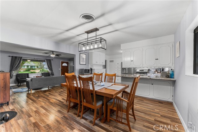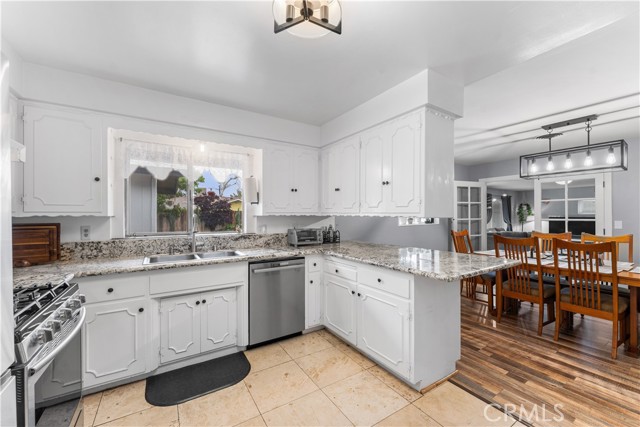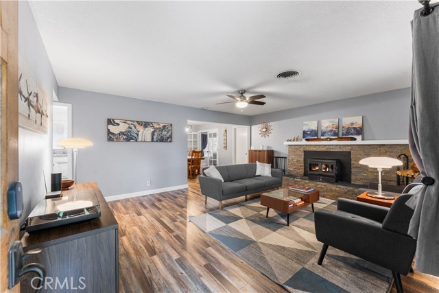 Craving a corner-lot retreat with room to spread out in Tehachapi? Mature shade trees and vibrant foliage set a welcoming tone as you arrive at this 3-bedroom, 2-bath ranch-style residence offering 1,617 sq ft on a 0.27-acre lot! Sunlight pours through a large picture window, highlighting the generous living room with its laminate floors, neutral hues, white trim, and stone tile fireplace. The open-concept layout flows from the dining area into a kitchen designed for culinary creativity, featuring granite countertops, abundant cabinetry, stainless steel appliances, and a multi-seat breakfast bar. French doors reveal a bonus room with a heating stove, ideal for entertaining or as an office. Your primary suite presents soft carpet alongside a refreshed ensuite, while additional bedrooms share a stylish hall bath. Outside, a brick patio overlooks an extensive lawn ready for weekend BBQs or gardening. Notables include an attached 2-car garage, and over $45,000 of recent home renovations. Further, this home features a separate shed or room that easily can be used as an extra office space. With proximity to shopping, SR-58, and only a short drive to Mojave, imagine what life here could bring you next!