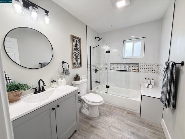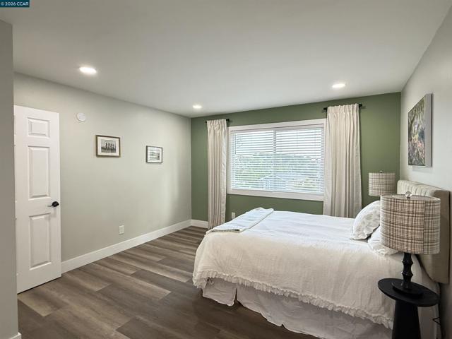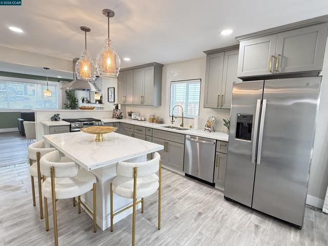 Welcome to this beautifully reimagined four-bedroom, two-bath tri-level home in the heart of Martinez, where modern upgrades meet timeless comfort and style. Completely redone from top to bottom, the stunning kitchen is a true centerpiece, featuring new cabinetry, quartz countertops, tile flooring, designer lighting, a spacious island, breakfast bar, and brand-new stainless steel appliances—perfect for both everyday living and entertaining. This elegant residence offers a warm and inviting atmosphere with laminate flooring, an electric fireplace, designer paint accent walls, recessed lighting, and new window blinds throughout. The private primary suite offers a serene retreat with a beautifully updated en-suite bathroom, while the hall bath is equally refined with a new vanity, tile shower, and custom enclosure. Enjoy peace of mind with major improvements including a new HVAC system and newly poured concrete driveway, walkways, garage floor, and back patio. Outdoor spaces shine with a deck, patio, front lawn, planter boxes, and automated irrigation. Located near vibrant downtown shops, restaurants, Marina Park, and top-rated schools, this home truly has it all.