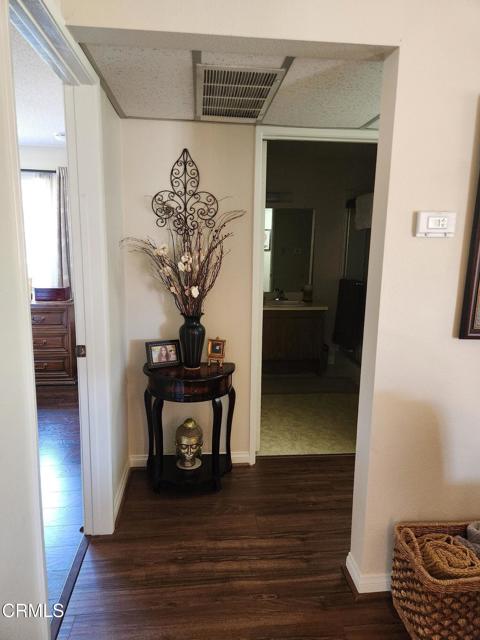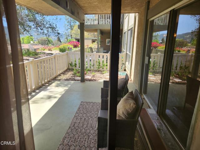 Light and bright, ground floor, corner unit perfectly situated in Oaknoll Villas. This complex is an adult community; restricted to 55 years or older. This coveted unit features a spacious master bedroom with it's own bathroom and an additional room with a hall bathroom. All the floors are a luxurious mahogany-like plank laminate. All appliances are included, refrigerator freezer, stove and microwave. Air conditioning too! There are spectacular mountain views from your private covered patio. The HOA amenities include earthquake insurance, trash, fiber-optics internet and Direct TV, a heated community pool and jacuzzi spa, a gorgeous clubhouse with a library near a cozy fireplace, game room, and an event banquet room with a commercial kitchen, pool table, a fully equipped gym, outdoor BBQ's, shuffleboard and an array of onsite amenities. Also provided are recycling and composting bins and large items once a month. Community laundry and a carport with private storage! And there's ample guest parking, too! Easy access, near the Los Robles Regional Medical Center. Explore the beauty of the lush, private garden, for quiet reflection and serenity.