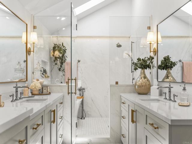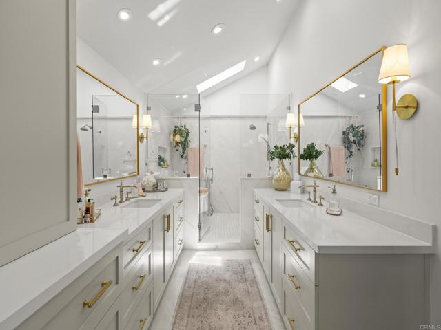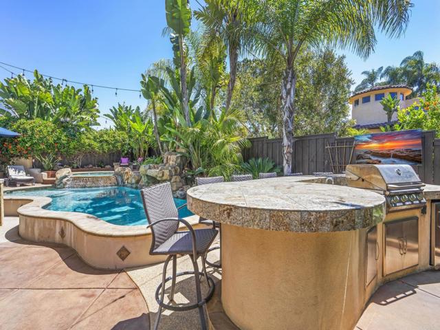 Fabulous Leucadia home with Ocean views from your private above roof deck. This home is chalk full of upgrades. Gorgeous chef kitchen with Quartz counter tops, built in fridge, double ovens, farmhouse sink, professional hood vent and marble back splash. All the floors throughout are Hickory wood and Travertine downstairs. Gorgeous private pool and spa in your backyard with outdoor kitchen area. Upstairs you will find your Primary Suite with fully upgraded bath. Huge walk in shower and separate tub. Quartz countertops. The floors in the Primary Suite are Maple Wood. Fireplace, balcony and his & hers walk in closets. Secondary rooms come with a Jack & Jill bath, one has its own balcony. Other features - Temperature regulated Wine Cellar, lots of extra built in storage, large laundry room with built in storage, custom oversized garage, solar power is owned, as well as pool solar and gas heater.
