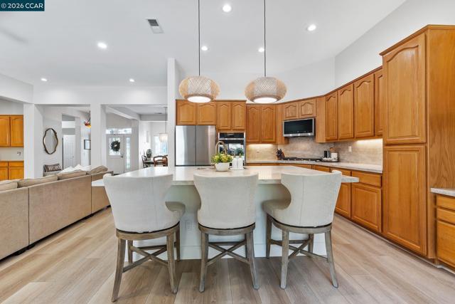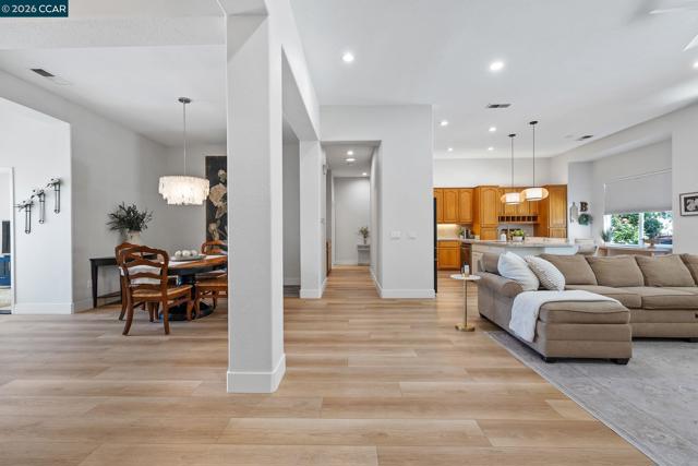 Beautifully Upgraded Chesapeake Floor Plan! Light, bright, and beautifully upgraded, this enhanced Chesapeake floor plan stands out from the moment you walk in. Extensively updated in 2024, the home features wide-plank luxury vinyl flooring, new baseboards, fresh interior and ceiling paint, and modern lighting throughout—creating a clean, cohesive feel across the home. The fully reimagined kitchen is the centerpiece, featuring stainless steel appliances, Taj Mahal quartzite countertops with a full-height backsplash, and a custom 8’x5’ island crafted for both everyday living and effortless entertaining. The layout is well designed, with open-concept and two spacious primary suites on opposite sides for privacy—ideal for guests or multigenerational living—plus a dedicated office and a flexible bonus room for hobbies, fitness, or additional living space. Step outside to a private backyard with no rear neighbors, complete with low-maintenance turf in both the front and back, a sprinkler system, and a remote-controlled awning that provides additional shade for comfortable outdoor living. Additional upgrades include owned solar with battery backup and no true-up electric bill, an EV charger, and all appliances included—delivering comfort, efficiency, and long-term value. Located in Summerset, a premier 55+ active adult community, residents enjoy resort-style amenities including an Olympic-size pool, spa, clubhouse, fitness center, pickleball, tennis, and bocce—all with low HOA dues. A home that delivers on every level—this is the one!