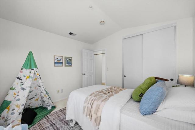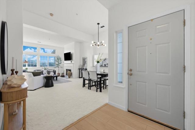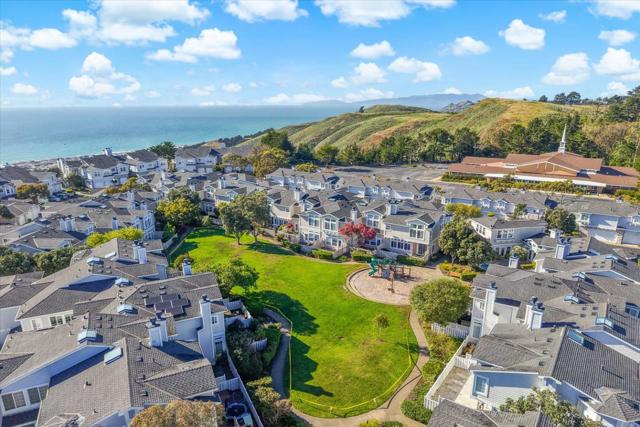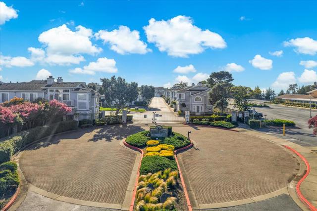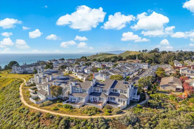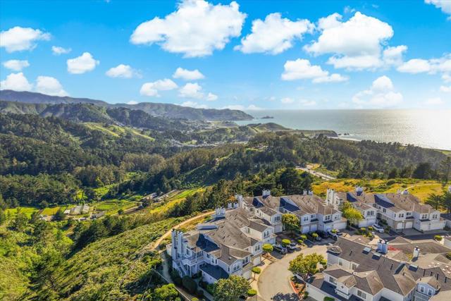 Perched on the top floor within the exclusive gated community of Mariners Pointe, this rare 3-bedroom residence offers a refined coastal lifestyle with privacy, light, and sweeping views. Approx.1,467 sqft, the home is defined by soaring ceilings and an abundance of natural light that pours into the expansive living space. Framed by tranquil mountain vistas, the living room creates a warm, sophisticated setting, complete with a wood-burning fireplace for cozy evenings. The dining area flows seamlessly for intimate dinners & gatherings.The kitchen features updated countertops, stainless steel appliances, and generous cabinetry. Vaulted ceilings and captivating mountain and ocean views create a sense of escape within the main suite. A spacious walk-in closet and spa-inspired ensuite bath with dual vanities, soaking tub, and extended storage. Additional bedrooms offer flexibility for guests, a home office, or a growing household. Highlights include in-unit laundry, central heating, two private garages plus nearby guest parking. Mariners Pointe delivers a resort-like lifestyle with scenic walking trails, clubhouse for large parties, fitness center, hot tub, and playground. Mere mins from San Francisco, Pacifica beaches, coastal trails, local shops, dining, public transit & SFO.