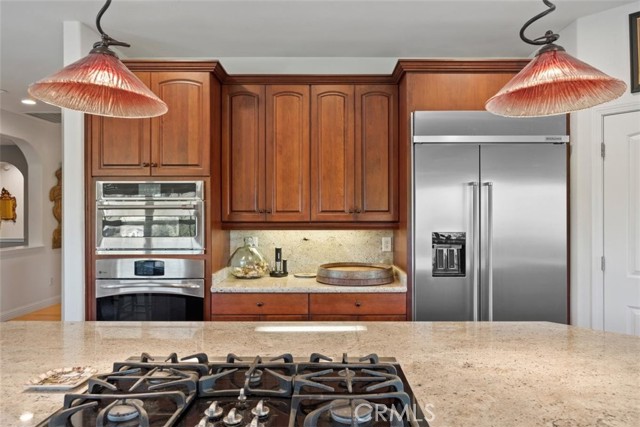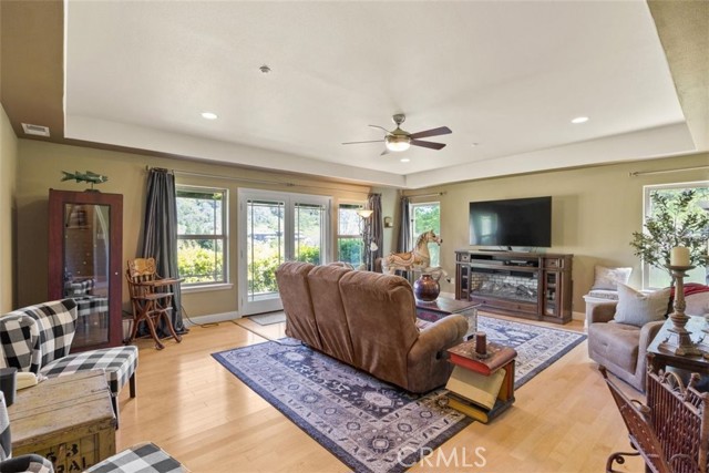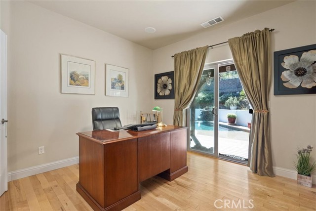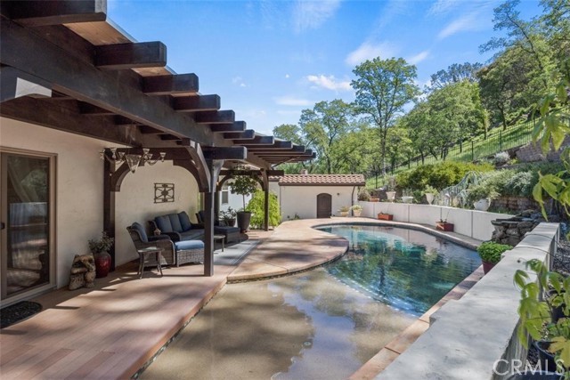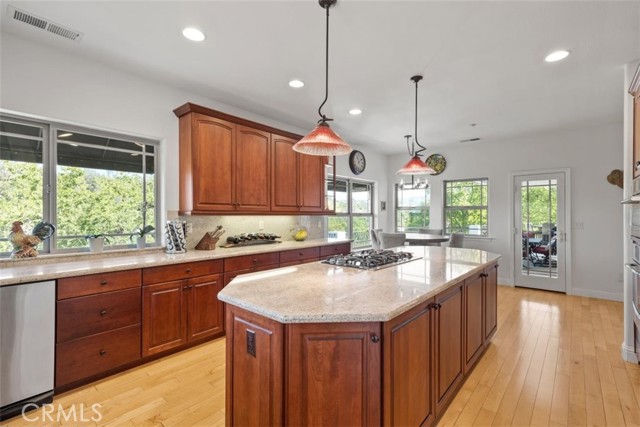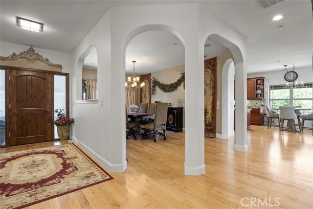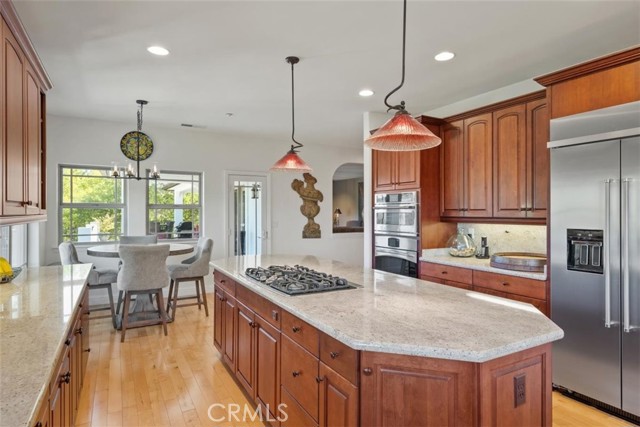 Stunning Tuscan Estate in Exclusive Gated Canyon Oaks Community! Welcome to this exceptional Tuscan-style residence nestled within the prestigious, gated Canyon Oaks golf course community. Situated on nearly half an acre, this 4-bedroom, 4-bathroom estate offers breathtaking views, timeless elegance, and thoughtfully designed living spaces. Step inside to soaring ceilings and an abundance of natural light streaming through numerous picture windows, creating a bright and airy ambiance throughout. Beautiful laminate wood flooring flows seamlessly across the main living areas. Designed for both luxury and functionality, the home features two spacious primary suites, including a main-floor retreat complete with a jetted tub, separate walk-in shower, and generous walk-in closet. A second primary suite is located on the lower level, offering privacy and flexibility for guests or multi-generational living. The heart of the home is the well-appointed kitchen, showcasing custom self-closing cabinetry and drawers, pots and pans drawers, granite countertops, a large island, top-of-the-line appliances, gas cooktop, trash compactor, and a walk-in pantry. Adjacent to the kitchen, enjoy a charming breakfast nook with picturesque views. Entertain in style in the expansive formal dining room, or relax in the luxurious living room featuring a fireplace and panoramic views that open seamlessly to a massive veranda—perfect for indoor-outdoor living. The veranda overlooks the golf course and includes its own outdoor dining area. Additional interior spaces include a private office with a closet and a dedicated media room, ideal for work and leisure. Step outside to your personal backyard oasis, complete with a sparkling in-ground heated Pebble Tec pool with cascading waterfall, a second outdoor dining area, and a covered patio wired for TV and spa—perfect for year-round enjoyment. Additional amenities include fully owned solar, fire sprinkler system throughout the house, central vacuum, water softener, dual HVAC systems, hot water circulator, wired for sound system, and a spacious 3-car garage. This remarkable property offers the perfect blend of luxury, comfort, and resort-style living in one of the area’s most sought-after communities.