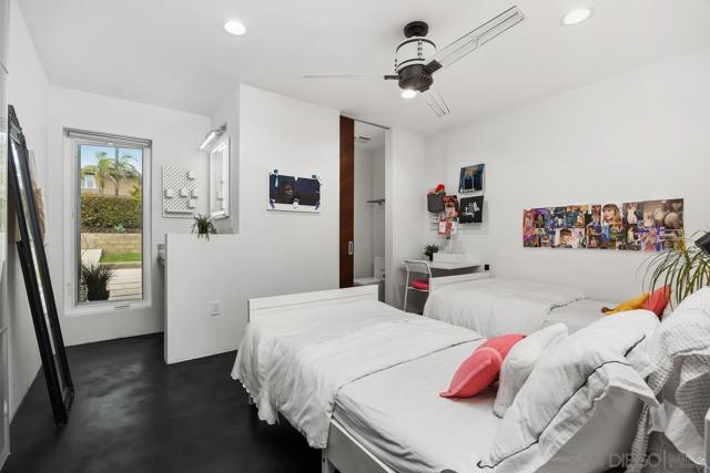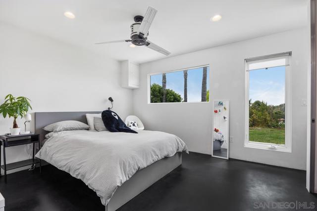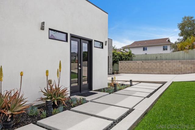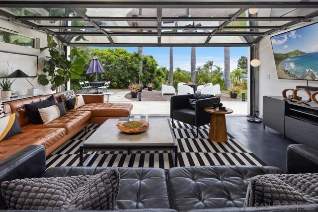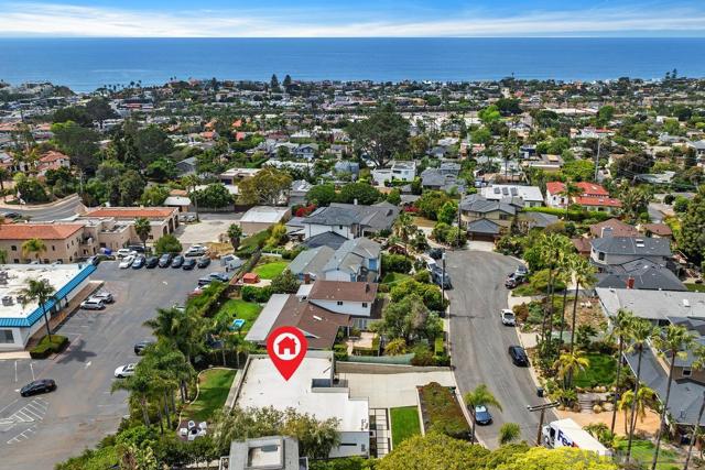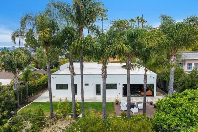 This contemporary single-story home, 4 bed/4.5 bath, rebuilt in 2020, is perfect for Airbnb, a rental investment, second home, or your dream home. Located west of the 5 in Solana Beach, it offers a prime location with a peek-a-boo ocean view from the backyard. No HOA! Just minutes to the beach and Cedros, with its trendy boutiques, dining, shopping and coffee shops, this home embodies coastal living at its finest. Featuring polished concrete floors, eight-foot frameless doors imported from Italy, and a custom front door, creating a sleek and cohesive aesthetic. Thoughtfully designed to create a seamless indoor-outdoor experience, the spacious backyard provides ample room for a pool, ADU, or extended outdoor living space. There's even potential for a second story to capture panoramic ocean views. Set in a quiet cul-de-sac, this gem offers privacy, a two-car garage, and steps to top-tier schools like Skyline Elementary and Earl Warren Middle School. With convenient access to 101 and I-5, this must-see property truly has it all!