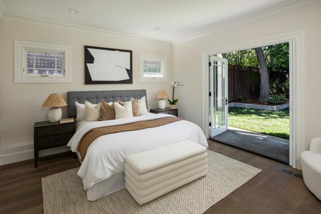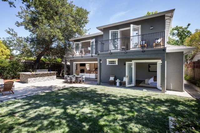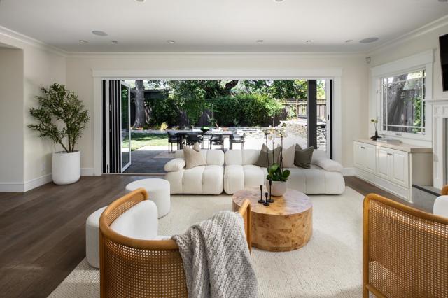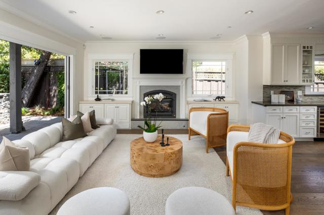 Located in the desirable El Sereno neighborhood of San Carlos, this beautifully built 2006 home blends thoughtful design with modern comfort. A dramatic two-story entry with a curved staircase, solid wood treads, and a herringbone runner sets the tone, complemented by wide-plank hardwood floors throughout. The formal living room features a gas fireplace with custom cabinetry, while the dining room offers elegant molding and a statement pendant, flowing into the main living areas. The great room opens fully to the backyard through wall-to-wall folding doors, creating seamless indoor/outdoor living. The family room includes a fireplace and built-ins, alongside a chefs kitchen with white cabinetry, farmhouse sink, Caesarstone countertops, and high-end Thermador appliances, including a cooktop, double ovens, dishwasher, and wine refrigerator. The main level includes a bedroom suite with private bath and backyard access, plus a powder room. Upstairs, the primary suite offers a private balcony, multiple closets, and a spa-like bath. Two additional bedrooms share a hall bath. The backyard features a patio, fire pit, barbecue, lawn, citrus trees, and privacynear parks, trails, and top-rated schools.