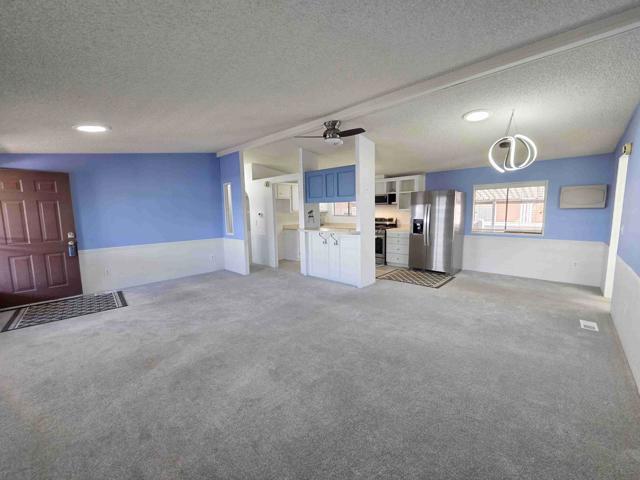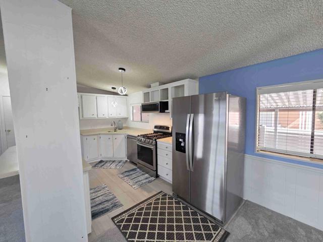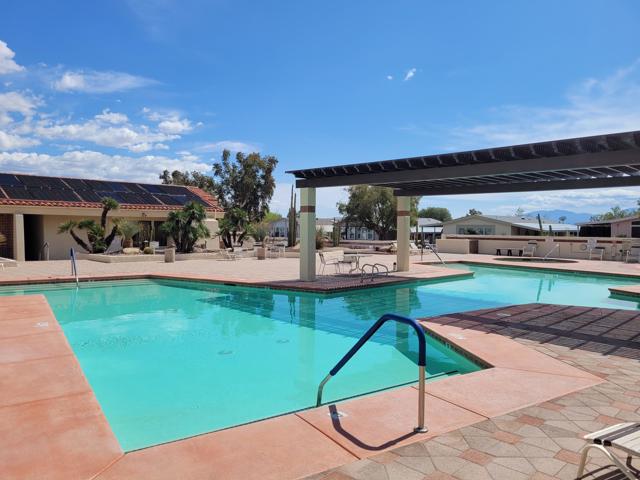 This 1988 Skyline manufactured home, with 1258 square feet of living space, two bedrooms, and 1 3/4 baths, is an oasis of tranquility and good taste in fabulous Vista Montana, the 'Gem Of The Desert'. The home has a split bedroom floorplan - the bedrooms are at opposite ends of the house for maximum privacy. The primary entrance to the house is via the west-facing covered deck, an area perfect for entertaining or relaxing while enjoying the expansive greenbelt views. A small concrete slab patio area is nestled near the rear of the property and is easily accessed by the deck. An adjacent second patio, made of concrete pavers and located at the back of the home, offers one of the best views in all of Vista Montana and is the perfect place to entertain guests or relax with morning coffee or evening wine. The front door enters into a large greatroom with vaulted ceilings and newer carpeting (which runs throughout most of the home). Opposite the front door is the kitchen, with an abundance of white cabinetry and newer stainless steel appliances. The dining area is adjacent to the kitchen and is open to the living room. At the southern end of the home is the larger of the two primary bedrooms; this bedroom has a full ensuite bath, a large reach-in closet, and plantation shutters. At the opposite end of the home, down a short hallway, lies the second primary bedroom with a remodeled three-quarter bath and walk-in closet. The laundry room, with a full-size washer and dryer, has direct access to the gated carport. This home has a recorded 433A. Vista Montana is an active 55-or-better community with a large clubhouse, two pools, two spas, shuffleboard, fitness center, and more. Call today for your private showing.