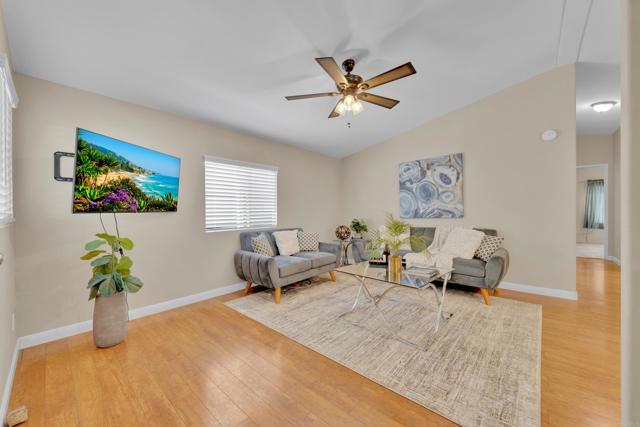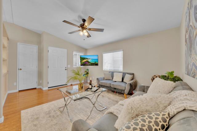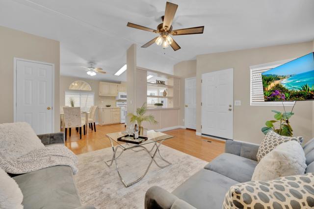 Great opportunity to buy a nice and spacious 2 bedroom home in the Terrace Estates. This newer model home offers laminate flooring, a newer roof, a newer AC compressor and newer exterior paint. This is a 55 and over community and Buyers must qualify with the park. Additionally, this home has an open floorplan, in unit laundry, carport parking, and reasonable space rent of under $1,000 per month. Easy access to the 125 freeway and nearby shopping.