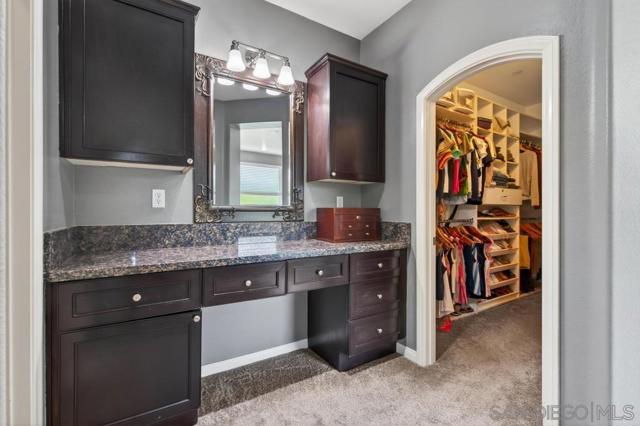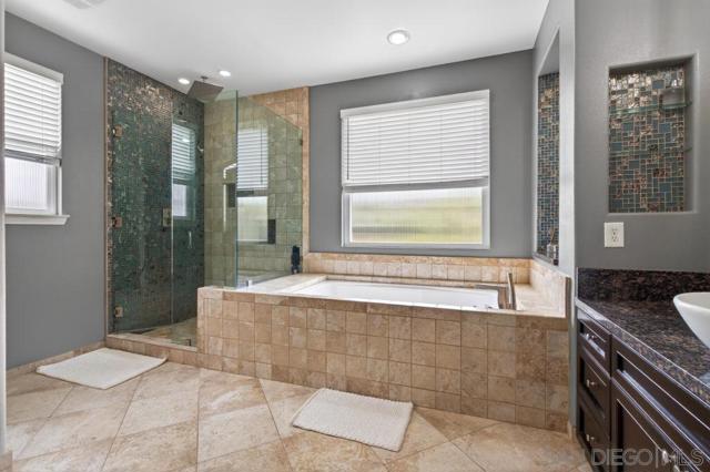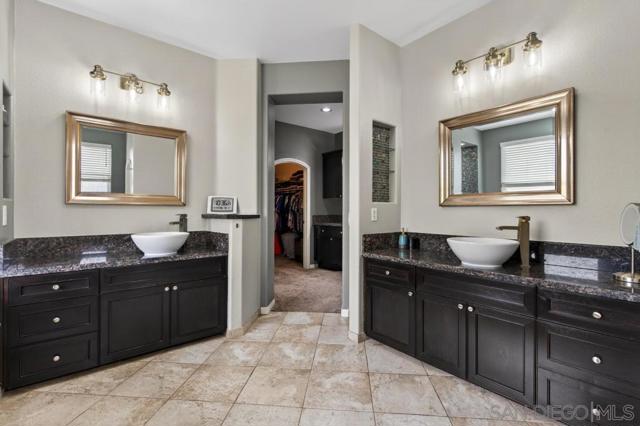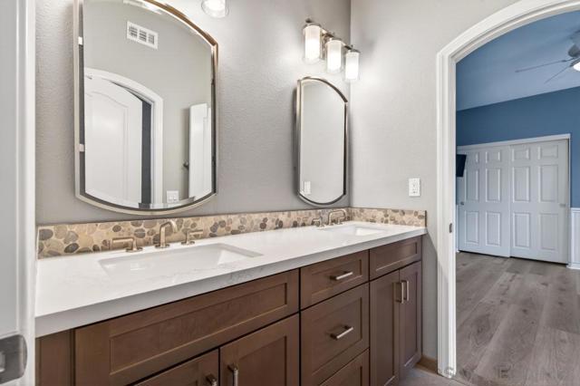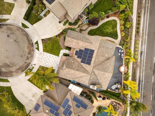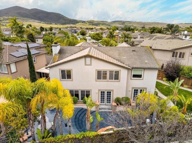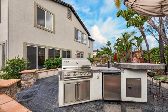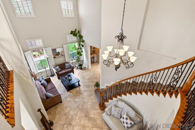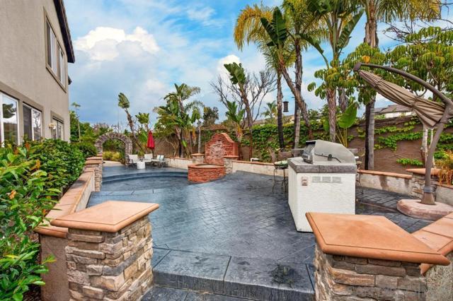 Welcome to this dream residence in the highly coveted 4S Ranch community! This beautifully maintained, refined living space sits on a premium south-facing lot that bathes every room in warm natural light from morning to sunset. Step through the grand front door into a dramatic two-story foyer anchored by a sweeping circular staircase. The interior has been tastefully and extensively remodeled, highlighted by a show-stopping designer kitchen that represents a $100,000 investment in premium finishes, top-tier appliances, expansive counter space, and custom cabinetry. Bathrooms have been thoughtfully updated with modern fixtures, luxurious finishes, and spa-like details. The open floor plan flows effortlessly from formal living and dining areas to expansive family spaces, creating the perfect setting for entertaining. Host overnight guests in their own downstairs, private bedroom with full bathroom. Outside, enjoy your own private oasis featuring a stunning water fountain and built in BBQ kitchen island surrounded by a newly completed walking path lined with mature fruit trees, lush shrubs, and vibrant landscaping. Practical luxury continues with an owned solar system, a 3-car garage upgraded with extensive built-in storage solutions, and a whole-home soft water system paired with reverse osmosis. Perfectly located in one of San Diego’s most desirable master-planned neighborhoods, this turn-key home combines timeless curb appeal, high-end updates, and thoughtful upgrades that make it truly move-in ready.