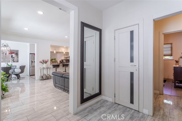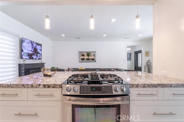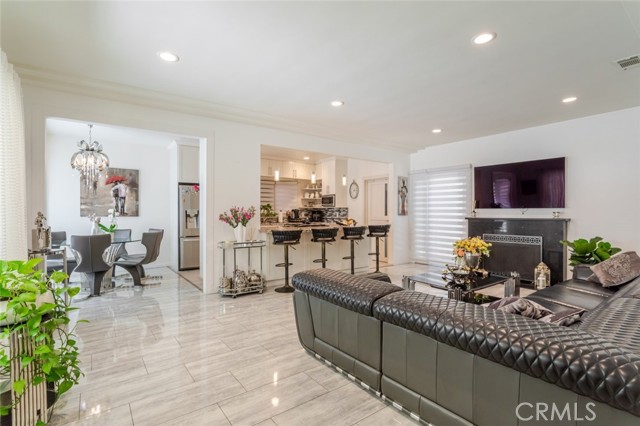 Welcome to 7284 Saint Estaban Street, a beautifully maintained single-story home nestled in a peaceful Tujunga setting. Offering 2 bedrooms, 2 bathrooms, and approximately 1,256 sq ft of thoughtfully designed living space, this residence blends comfort, style, and indoor-outdoor living. Light-filled and airy, the open floor plan showcases a spacious living room with coffered ceilings, recessed lighting, hardwood flooring, and a cozy wood-burning fireplace. Elegant French doors and a large picture window bring in abundant natural light, creating a seamless connection between the living, dining, and kitchen areas, ideal for both everyday living and entertaining. The updated kitchen features ample cabinetry, granite countertops, stainless steel appliances, and a generous breakfast bar that opens to the main living space. A charming dining area is perfectly positioned near oversized windows, offering a bright and inviting place to gather. Both bedrooms are well-proportioned, with the primary suite offering comfort and privacy. The home's layout is designed for ease and functionality, complemented by an attached one-car garage. Enjoy California living at its best in the expansive backyard, complete with a covered patio lounge area, mature trees, and a large paved space ideal for entertaining, recreation, or additional parking. The private setting provides a tranquil retreat while still being conveniently located near local amenities. A wonderful opportunity to own a move-in ready home with character, charm, and versatile outdoor space in a desirable Tujunga neighborhood.