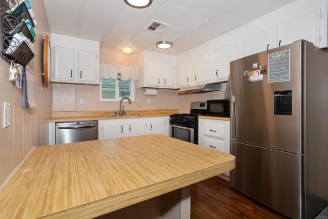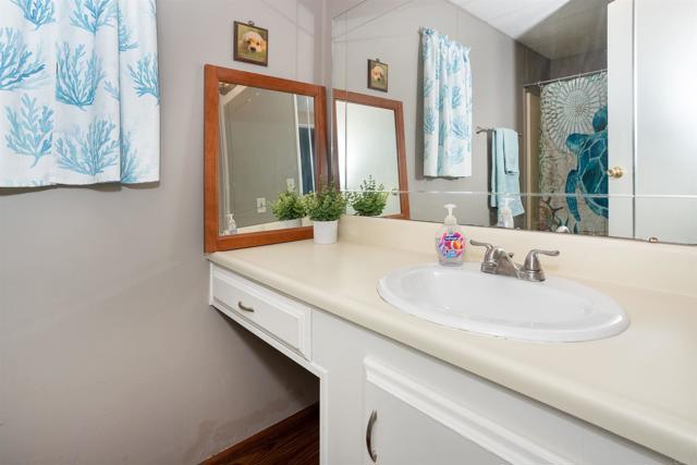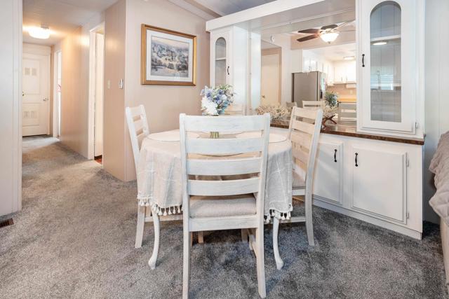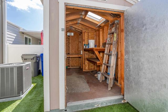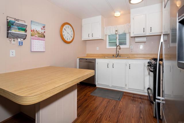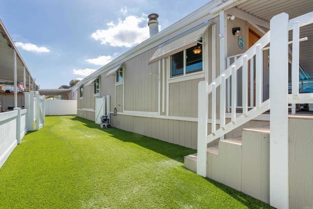 Fantastic 2 bedroom 2 bath manufactured home with a WOW outdoor space! The front porch entrance brings you into the living room with a vaulted ceiling & fireplace. The kitchen has stainless steel appliances, a breakfast nook & wood laminate flooring. Light & bright dining room with a built-in hutch. Laundry room with nice storage. Washer & Dryer are included too. Dual pane windows. Great outdoor space surrounded by newer white vinyl fencing. Central Air. Tough Shed. Space rent is $503.80. Guest parking is right across the street - so convenient! The community is west of the 5 freeway. Close to shopping & the beach too!