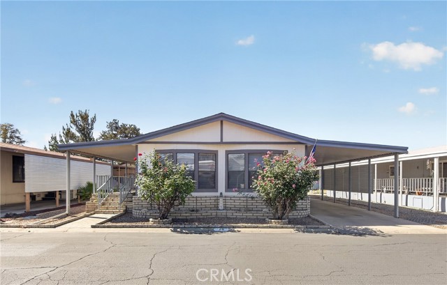 Very nice 2 bed, 2 bath double wide home in the desired & gated 55+ age restricted community of Heather Estates. Built in 1986 w/1,248 sqft., has an open floorplan freshly painted w/multiple ceiling fans, dining area w/built-in hutch and kitchen w/newer appliances. Bedrooms & bathrooms are good sized, mirrored closet doors in primary bedroom. Inside laundry with lots of storage. Full length carport and a shed. Your mornings or evenings can be spent relaxing on the porch with a wonderful view of the mountains. Enjoy the beautiful pool & spa and pond areas and all the activities in the large clubhouse, including billiards, game room, shuffleboard, hall w/full kitchen, library, and exercise room. Put this one on your must see list!