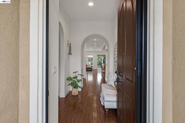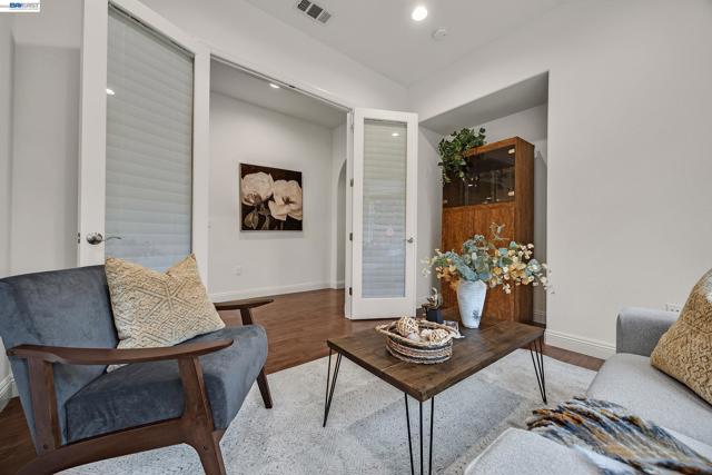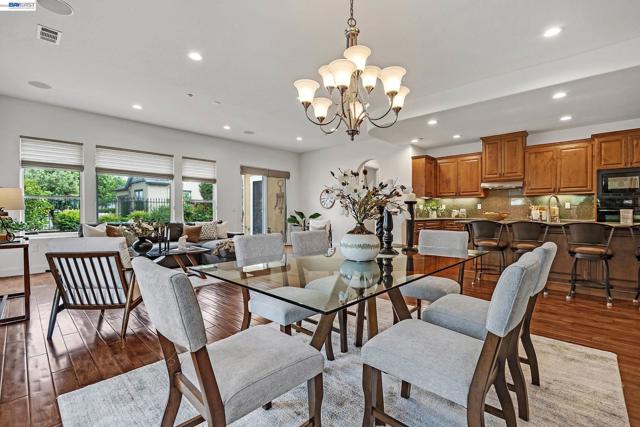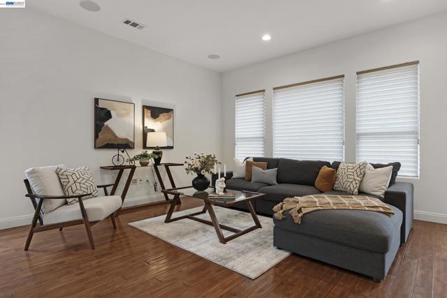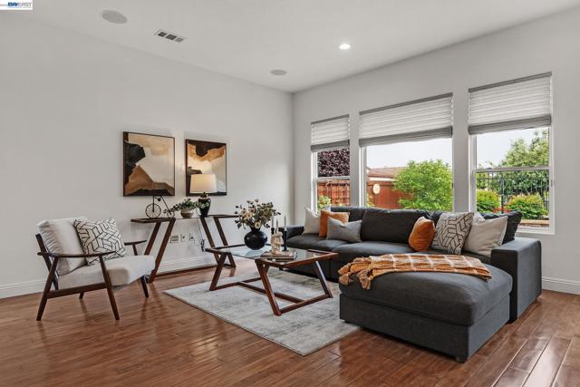 Highly upgraded Costa Dorada model offering 1,946 sq ft with over $100,000 in original builder upgrades. Freshly painted interior (April 2026) creates a light, bright, move-in-ready feel. The home features premium Anderson Maple hardwood flooring, Hunter Douglas custom blinds, and a versatile smart space with built-in cabinetry perfect for a home office, hobby area, or additional storage. Enjoy modern conveniences, including a central vacuum system and home theater pre-wire. Step outside to a beautifully landscaped front and backyard, complete with two electric shade overhangs and retractable blinds for comfortable outdoor living year-round. Owned solar adds efficiency and long-term savings. The garage is equally impressive with built-in cabinets and a dedicated workbench for added functionality. Quality finishes and thoughtful upgrades throughout make this home truly stand out. A detailed list of upgrades is available in the disclosures for buyer review. Residents enjoy access to Club Los Meganos with indoor/outdoor pools, fitness center, pickleball, tennis, on-site dining, and a full calendar of social activities.