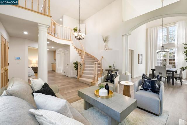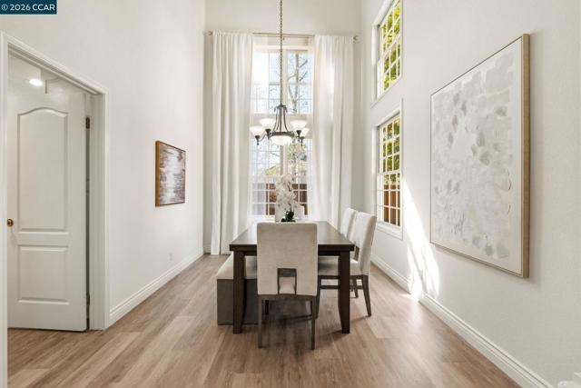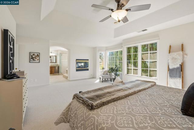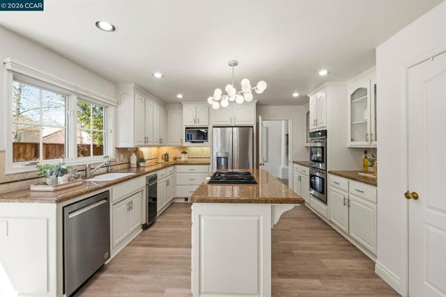This stunning family home welcomes you with a dramatic staircase, soaring ceilings, oversized windows, and abundant natural light. The open-concept layout feels spacious and inviting featuring luxury vinyl flooring, brand-new carpet, and designer finishes throughout. The updated eat-in kitchen boasts ample cabinetry, sleek granite counters, stainless steel appliances, double ovens, and a pantry. It opens to the family room, where there is access to a large, private backyard—perfect for relaxing or entertaining. The thoughtful layout continues with a formal living room complete with fireplace, a formal dining room, a flexible main-level bedroom or home office, and a full bathroom on the first floor. The luxurious primary suite serves as a peaceful sanctuary, boasting its own cozy fireplace, dual vanities, a spa-inspired walk-in shower, a separate deep soaking tub, and an enormous walk-in closet. Upstairs, you’ll find two additional generously sized bedrooms plus a versatile loft space—perfect for kids to play, relax, or use as a study area. Outdoors, the backyard offers plenty of room for entertaining, while the three-car garage delivers exceptional parking and storage. Conveniently located near top-rated schools, the community pool, greenbelt, trails, and shopping.