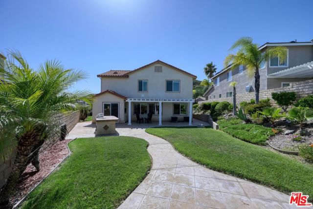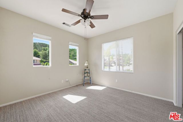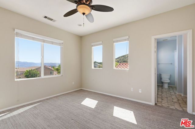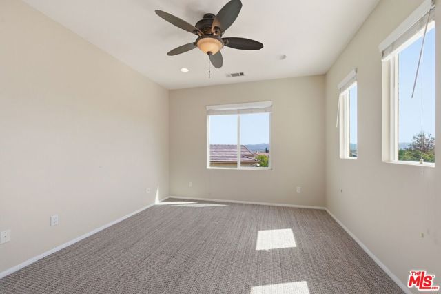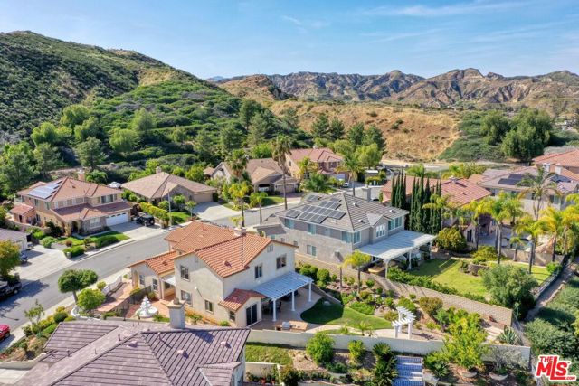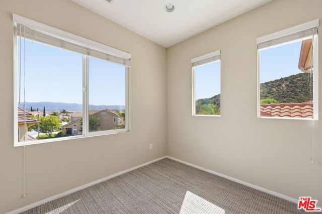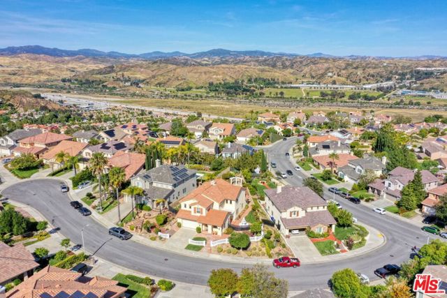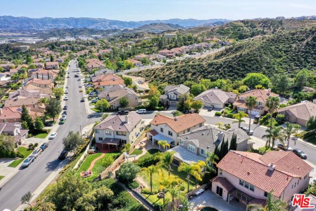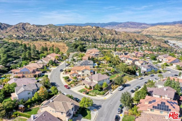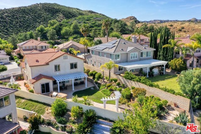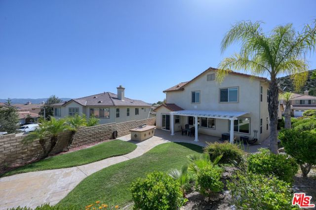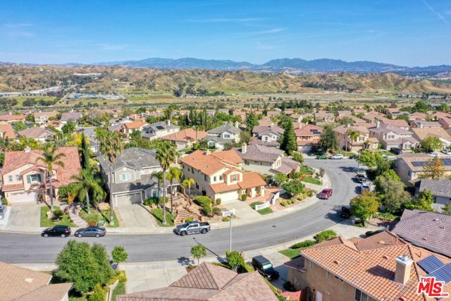 Perched on a quiet cul-de-sac in Castaic, Ca., this expanded Richmond American Plan 3 home captures truly spectacular, panoramic views stretching across the valley floor and out to distant mountain ranges that shift colors with the light of the day. Built in 2003 and offering approximately 3,400 square feet, the residence features 6 bedrooms and 4 bathrooms on nearly a quarter-acre lot, ideal for those seeking space, flexibility, and a scenic backdrop to everyday living.Inside, soaring 12-foot ceilings and expansive windows frame the views while filling the home with natural light. The open-concept kitchen flows effortlessly into the family room, where a fireplace and built-in surround sound create an inviting central gathering space all oriented to take full advantage of the picturesque surroundings. Finishes include wood-look tile flooring, plantation shutters, and newer carpeting throughout.Designed with versatility in mind, the home includes a highly desirable downstairs bedroom and full bathroom, perfect for guests, extended family, or a private office. Upstairs, a separate private suite distinct from the primary bedroom offers additional flexibility for multi-generational living or long-term visitors. Select bedrooms feature walk-in closets for added convenience.The backyard is a true extension of the home, thoughtfully arranged with multiple sitting areas and a dedicated BBQ space each positioned to soak in the sweeping views and create the perfect setting for entertaining or quiet evenings under the open sky.Ideally located just minutes from everyday amenities, schools, sports complexes, county pools, and the outdoor recreation of Castaic Lake, with easy freeway access for commuting. With a low HOA of $99 per month and no Mello-Roos tax, this property offers exceptional value paired with unforgettable views.