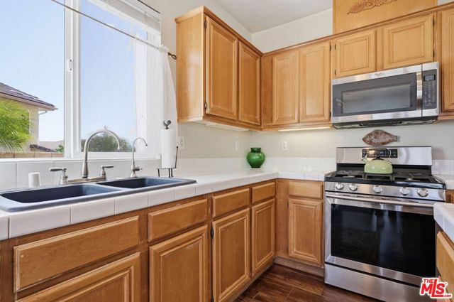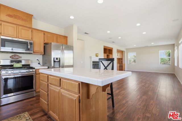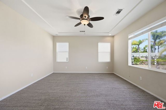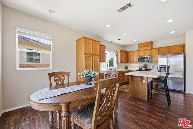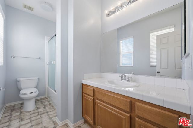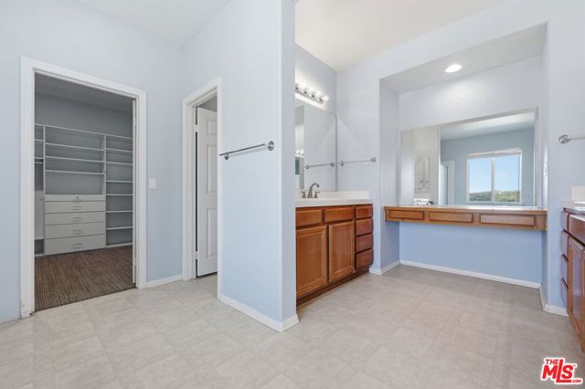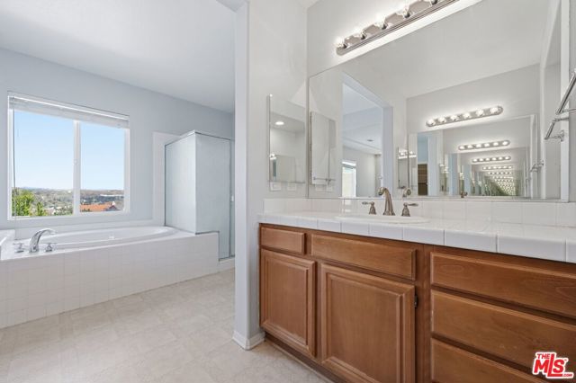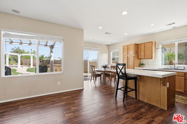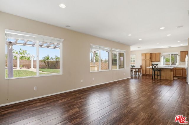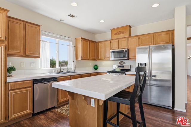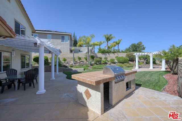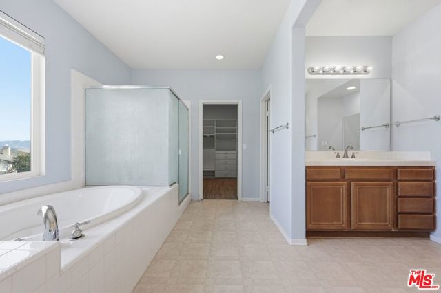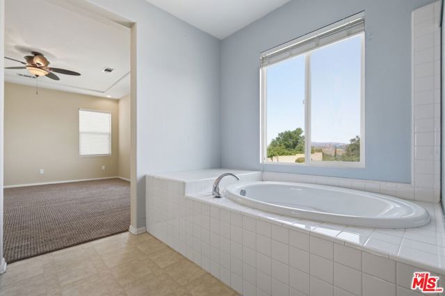 Perched on a quiet cul-de-sac in Castaic, Ca., this expanded Richmond American Plan 3 home captures truly spectacular, panoramic views stretching across the valley floor and out to distant mountain ranges that shift colors with the light of the day. Built in 2003 and offering approximately 3,400 square feet, the residence features 6 bedrooms and 4 bathrooms on nearly a quarter-acre lot, ideal for those seeking space, flexibility, and a scenic backdrop to everyday living.Inside, soaring 12-foot ceilings and expansive windows frame the views while filling the home with natural light. The open-concept kitchen flows effortlessly into the family room, where a fireplace and built-in surround sound create an inviting central gathering space all oriented to take full advantage of the picturesque surroundings. Finishes include wood-look tile flooring, plantation shutters, and newer carpeting throughout.Designed with versatility in mind, the home includes a highly desirable downstairs bedroom and full bathroom, perfect for guests, extended family, or a private office. Upstairs, a separate private suite distinct from the primary bedroom offers additional flexibility for multi-generational living or long-term visitors. Select bedrooms feature walk-in closets for added convenience.The backyard is a true extension of the home, thoughtfully arranged with multiple sitting areas and a dedicated BBQ space each positioned to soak in the sweeping views and create the perfect setting for entertaining or quiet evenings under the open sky.Ideally located just minutes from everyday amenities, schools, sports complexes, county pools, and the outdoor recreation of Castaic Lake, with easy freeway access for commuting. With a low HOA of $99 per month and no Mello-Roos tax, this property offers exceptional value paired with unforgettable views.
