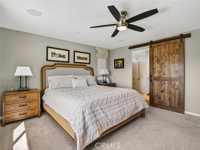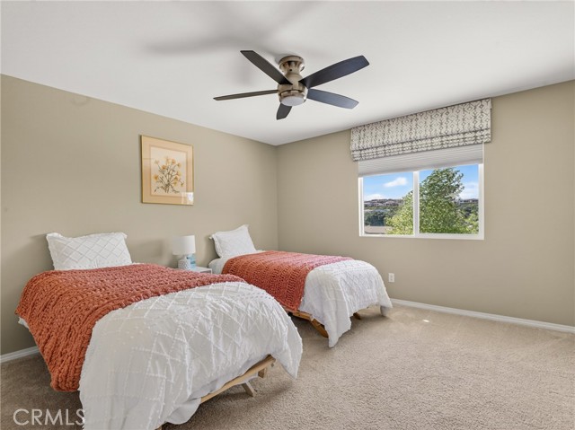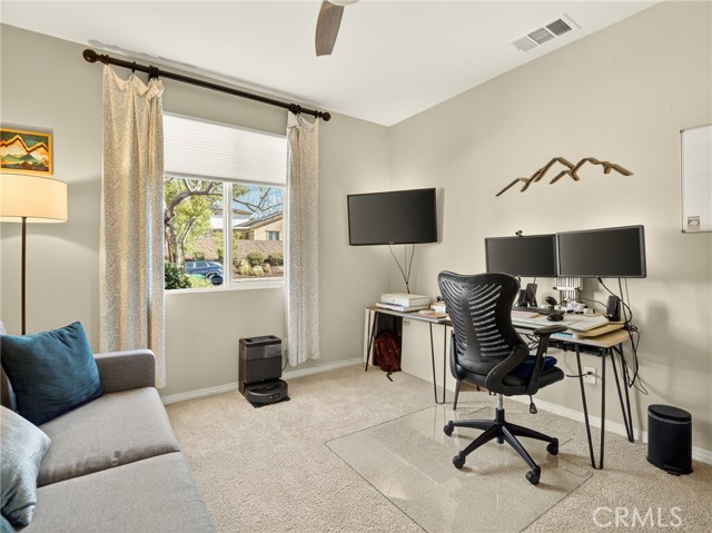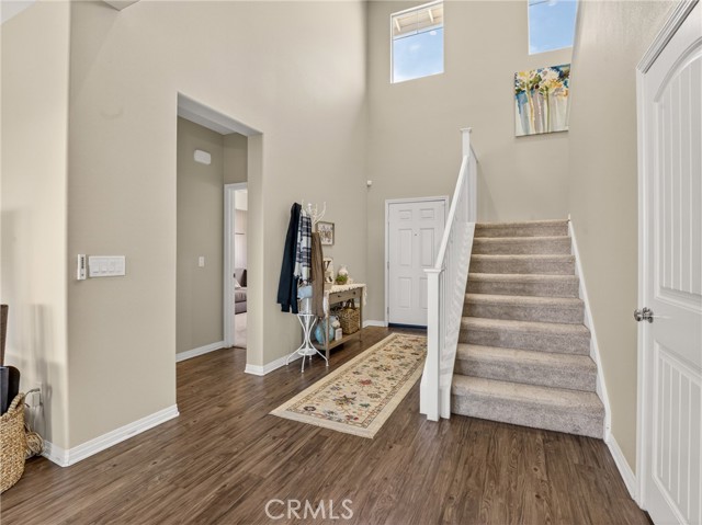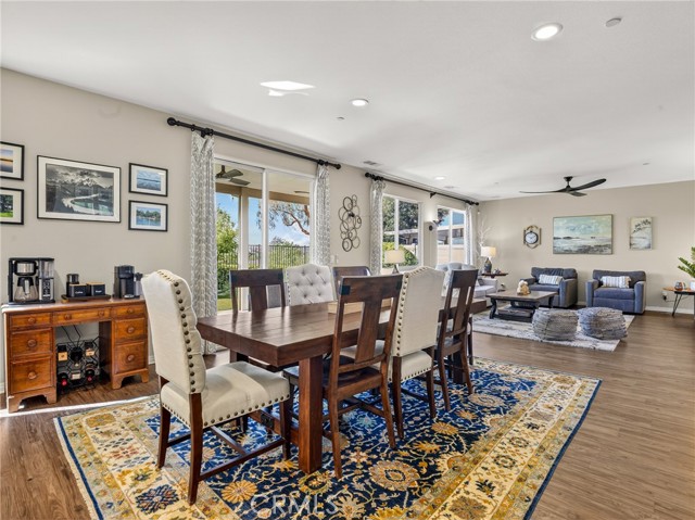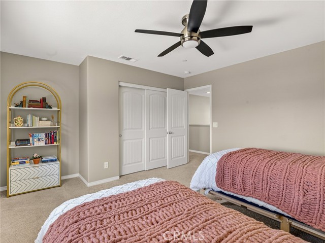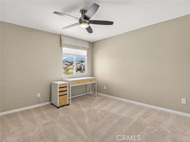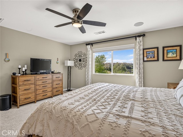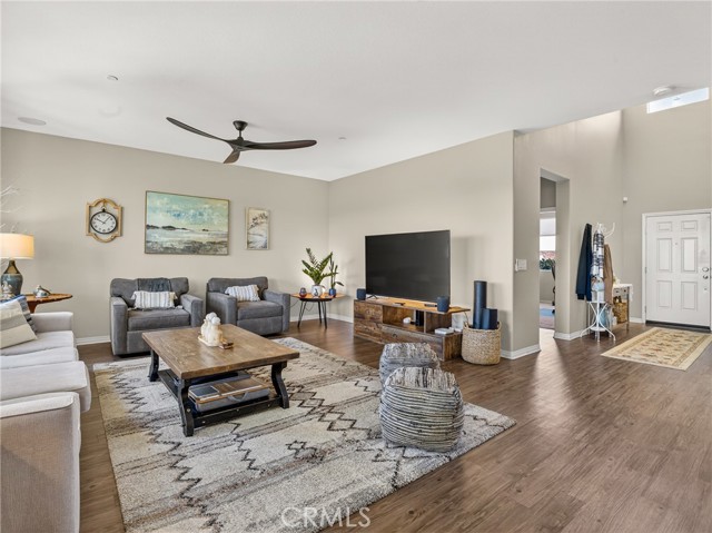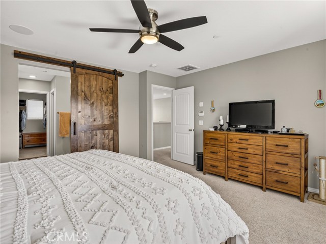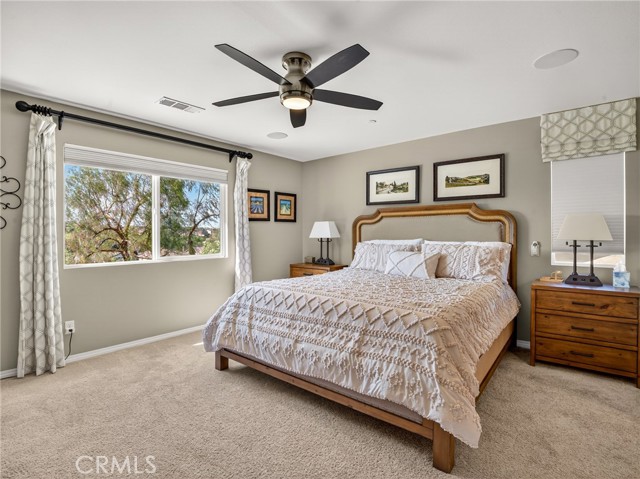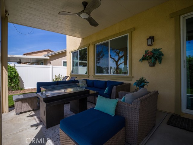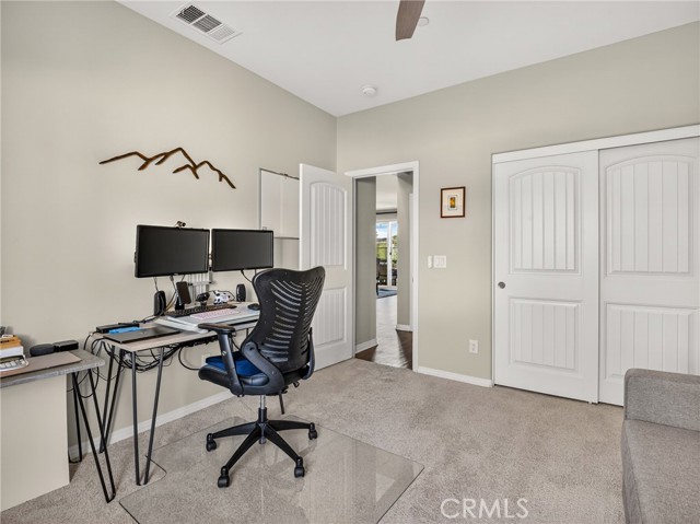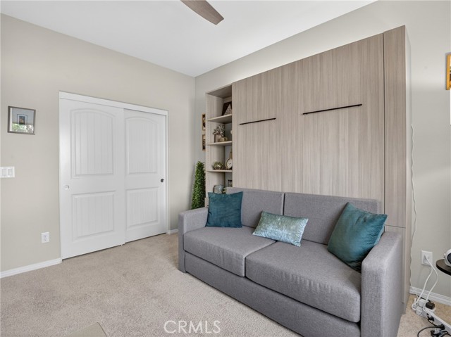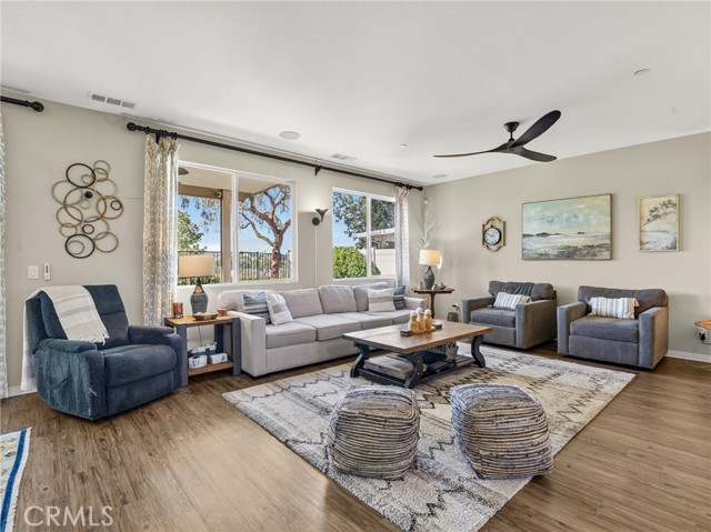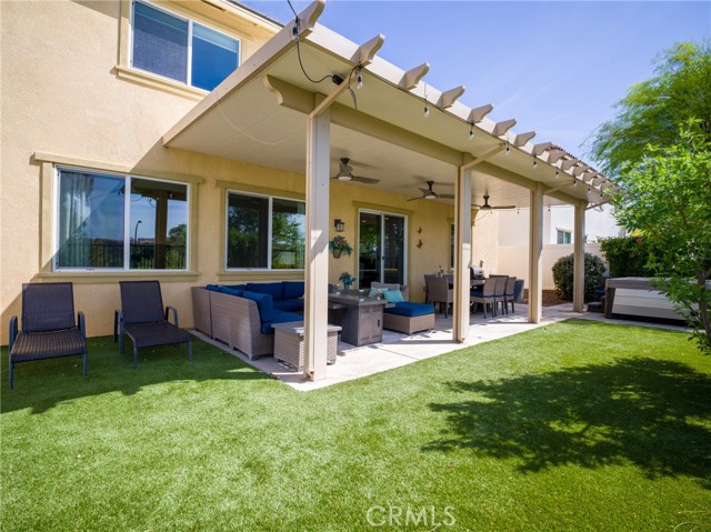Tucked into the established Fairway Canyon community in Beaumont, this stunning 5-bed, 3-bath Solar home offers expansive canyon views and is perfect for families searching for affordability, access to nature, and amenities for all ages. The open-plan main floor features 10' ceilings, a chef's kitchen with large island and walk-in pantry, and a flexible downstairs suite with Murphy bed that’s perfect for guests or remote work. The primary suite offers a beautiful new tiled shower with frameless entry and custom barn door. The remaining 2 bedrooms are a good size and the second bathroom has dual sinks, tub and shower. Step outside to a fully covered patio, included spa, and low-maintenance xeriscape yard, all overlooking rolling hills. Owned solar and a full smart home system are included. Low HOA fees cover high-speed internet, fitness center, resort-style pools, splash pad, and event space. The new Summerwind Trails TK–8 school, 20 miles of trails, and several parks are all within easy walking distance. The washer/dryer and fridge stay with the home.