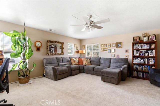 Located in the desirable Rancho Belago community of Moreno Valley, this spacious 2,685 sq ft residence features a thoughtfully designed layout that balances comfort, scale, and everyday functionality. Built in 2002, the home includes multiple living areas, a flexible bonus room, and a private retreat off the primary suite. This is ideal for a home office, media space, or quiet lounge. The open-concept design enhances natural flow between living and entertaining spaces, complemented by expansive windows that bring in abundant natural light. Well-proportioned living areas accommodate a variety of lifestyle needs. Set on a generously sized lot, the outdoor space provides room to create a personalized backyard retreat tailored to future vision and use. Ideally positioned near Lake Perris State Recreation Area, Rancho Del Sol Golf Club, local shopping, schools, and major commuter routes, this home delivers convenience, recreation, and neighborhood accessibility within an established and growing community.