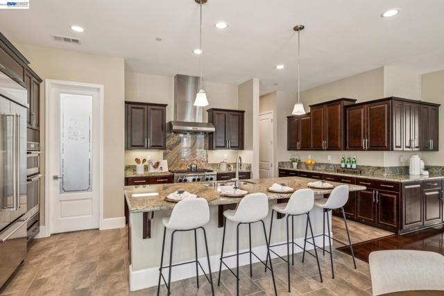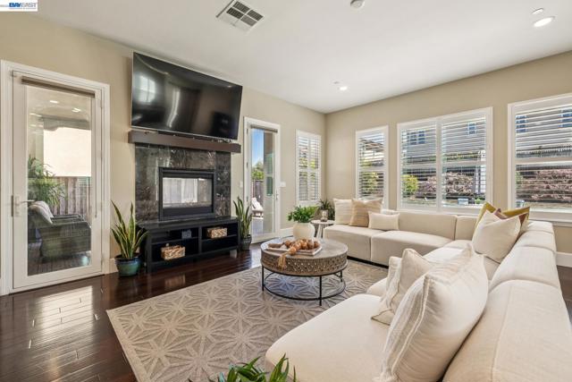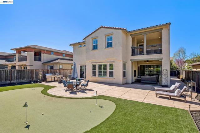 Rare La Jolla floor plan located behind the double gates of Stonebrae Country Club. This 5-bed, 5.5-bath home offers 3,888 sq ft of living space on an 8,819 sq ft mostly flat lot. Main level features a spacious great room with a two-way fireplace connecting to the California Room, a formal dining room with outdoor access, a large kitchen with abundant cabinetry and a walk-in pantry, plus a den or office and a half bath. Upstairs includes a primary suite with a private balcony, a spa-like bath with a soaking tub and an oversized shower, and a large walk-in closet. Three additional ensuite bedrooms all include walk-in closets. Versatile in law suite offers a separate exterior entrance with interior access and two private balconies. Backyard features low-maintenance artificial turf, a BBQ area, and a putting green. Additional features include owned solar panels and two Tesla batteries. Located in a prestigious gated golf course community with convenient access to major commute routes.