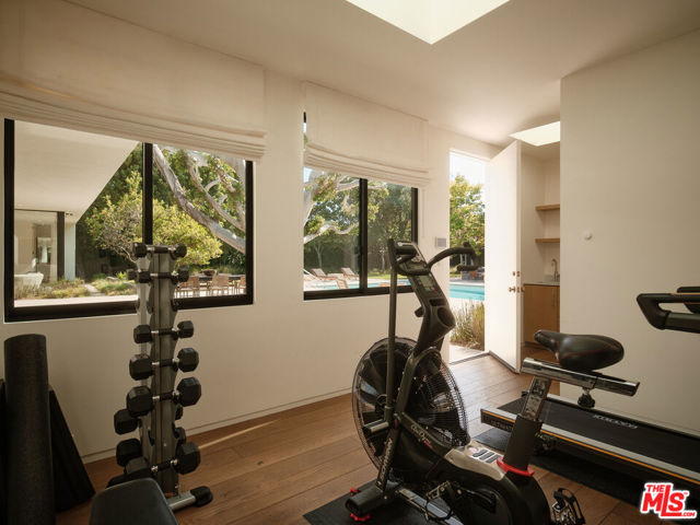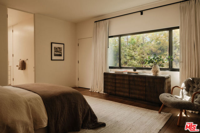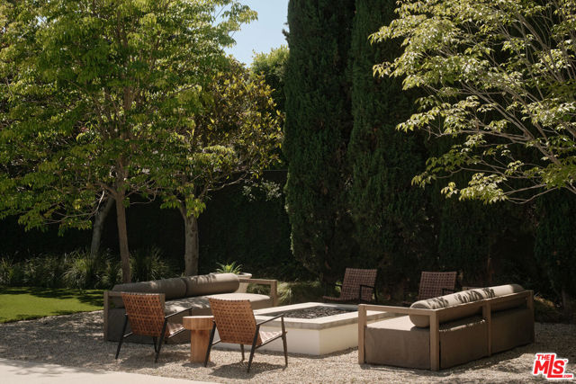Discreetly nestled behind gates sits this light and bright iconic one-story mid-century home situated on a spectacular 27,800 sf lot. Designed in 1961 by Daniel Dworsky, the man behind Bradley's International Terminal at LAX, UCLA's Drake Stadium and the Federal Reserve Bank in Los Angeles. This flawless floor plan with high ceilings throughout was gutted and reimagined by Waldo Fernandez and has all the finishes appropriate for today's lifestyle. A double-door entry welcomes you into this 4-bedroom, 5-bath home, plus an attached gym/guest room. Floor-to-ceiling glass flanks the formal dining area, and the original double-sided fireplace anchors the living room and family room. Great walls for art, open floor plan, and terrazzo and hardwood floors compliment this extremely rare offering. A separate full bar and gourmet kitchen are perfect for large scale entertaining. Walls of glass overlook a park-like backyard, stunning pool, and outdoor kitchen.