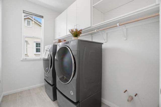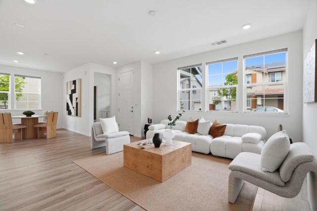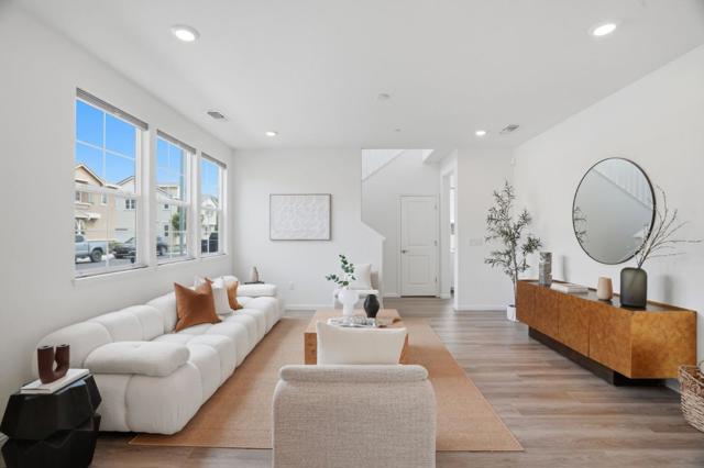 Spacious, bright, corner residence in the desirable Eden Shores community, offering easy commute to the Peninsula, SF & Menlo Park. Built in 2019, this like-new home features over $50,000 in builder upgrades, owned solar, and a Tesla Powerwall for energy efficiency. High ceilings and an open-layout create an inviting atmosphere, with expansive living and dining areas flowing into a chefs kitchen with a large quartz island, full-height backsplash, upgraded appliances, and RO water system. The main level includes a convenient powder room and opens to a low-maintenance landscaped backyard, perfect for relaxing or entertaining. Upstairs, a versatile loft offers flexibility for a home office, media room, gym, or potential 4th bedroom. The spacious primary suite features a spa-like bath with dual vanities, soaking tub, glass shower, and a large walk-in closet. Two additional bedrooms and an upstairs laundry room complete the upper level. Additional highlights include a two-car garage with epoxy flooring, EV-ready, tankless water heater, central heating/AC, and custom window treatments. Walkable to nearby parks, Costco, Starbucks, and local dining. Near BART, Highway 880, the San Mateo and Dumbarton Bridges for easy access to San Francisco, the Peninsula, and Silicon Valley.