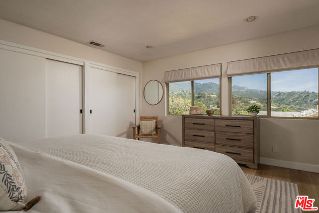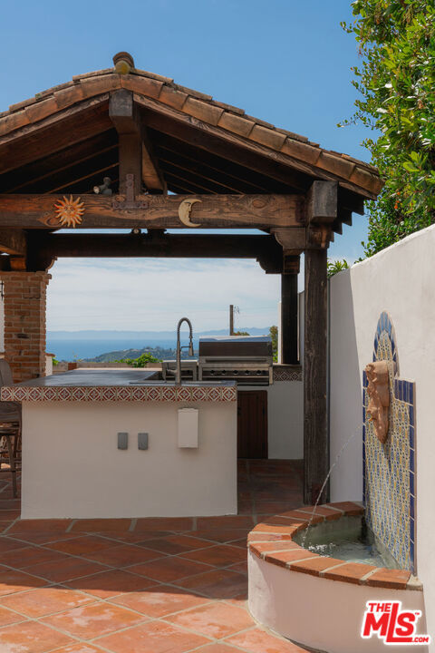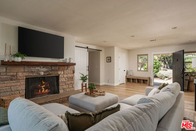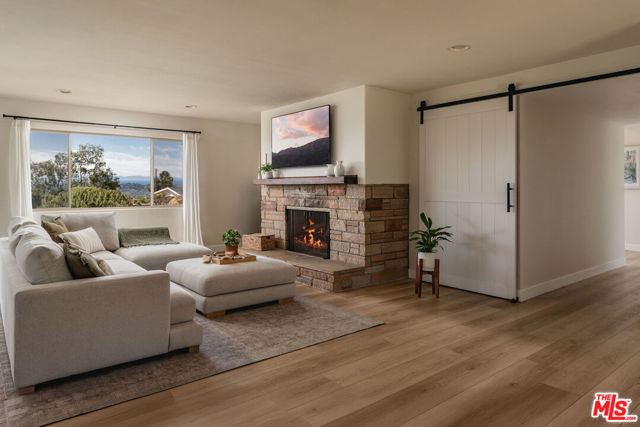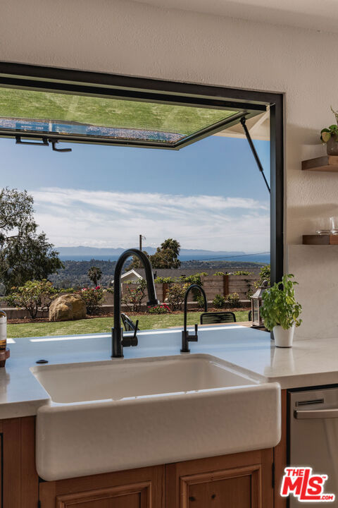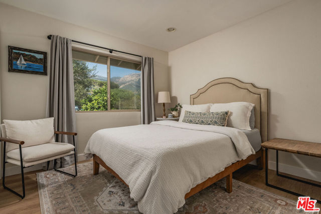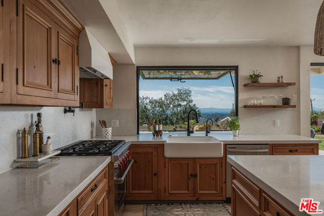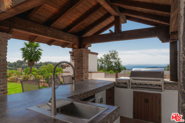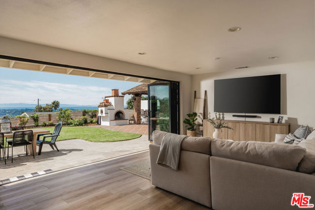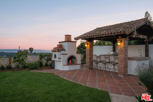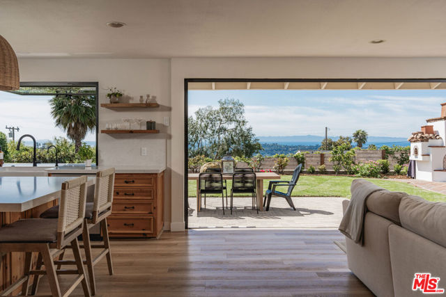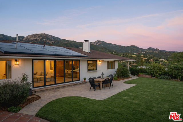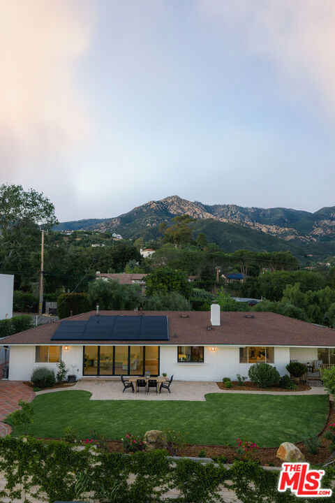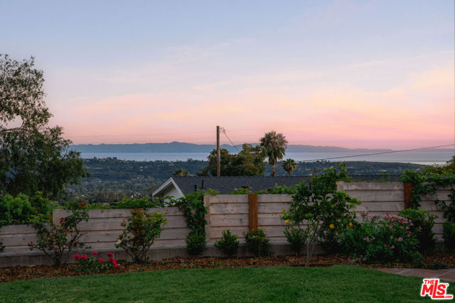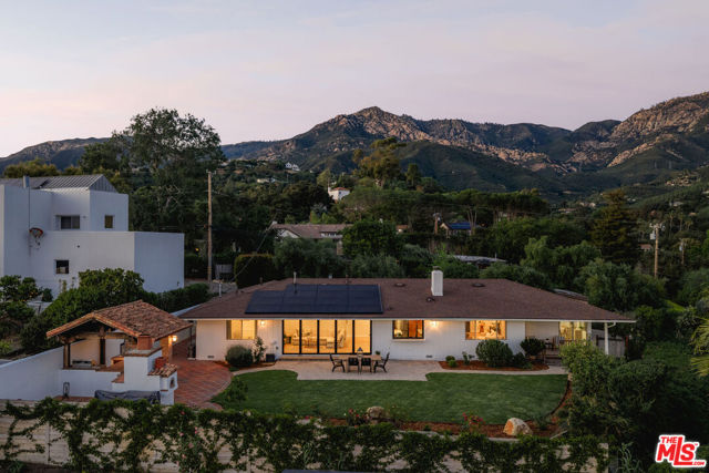 Perched in a picturesque setting, this single-level ranch-style home is thoughtfully designed to capture sweeping mountain, ocean, and island views from nearly every angle, creating a breathtaking backdrop for everyday living. Updated in 2025, the home's seamless layout is perfectly suited for both entertaining and relaxed coastal living, with floor-to-ceiling nano doors that seamlessly extend the interior to a spacious patio complete with an outdoor kitchen, fireplace, and pizza oven. The open concept kitchen features a Wolf range, Sub-Zero wine refrigerator, an island with seating, and a pass-through window that extends the kitchen to an outdoor counter blending elevated style with everyday functionality. Offering four bedrooms and two bathrooms, the primary suite is situated onit's own wing, offering a peaceful retreat with sweeping mountain and ocean views. Modern amenities include heated floors in the primary suite bathroom, Tesla solar with battery and universal in-garage charging station, and new HVAC system enhancing both efficiency and convenience. The grounds are equally impressive, with lush landscaping, a sprawling lawn, fruit trees including apple, guava, peach, and nectarine, and vegetable beds. Ample parking is provided by a two-car garage and a circular driveway. Ideally located near scenic hiking trails, the Santa Barbara Botanical Gardens, and Santa Barbara Mission, this home embodies the very best of Santa Barbara living, where comfort, beauty, and lifestyle come together in effortless harmony.