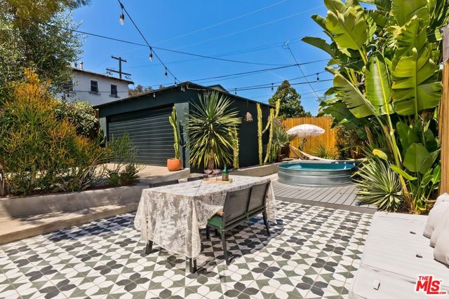 Welcome to your Frogtown hideaway - a stylish 3-bedroom, 2-bath bungalow in one of LA's most vibrant, creative enclaves. A beautifully landscaped front yard and inviting porch set the tone, leading into a light-filled living room and a thoughtfully remodeled kitchen featuring quartz countertops and stainless steel appliances. A bright and airy dining nook with a built-in banquette offers the perfect blend of comfort and style. The home has two secondary bedrooms that share a hallway bath, along with an additional powder room for guests. The primary suite opens directly to the backyard through French doors, creating seamless indoor-outdoor flow. Designed for both relaxation and entertaining, the private backyard features a tiled patio, lush greenery, string lights, and a cowboy pool - perfect for enjoying warm California days. A detached two-car garage provides flexible space for parking, storage, or potential creative use. Ideally located near the LA River bike path and just moments from Frogtown favorites like Loreto, Frogtown Brewery, Lingua Franca, and Spoke Bicycle Cafe with easy access to dining, coffee and live music. A rare opportunity to experience the best of Eastside living.
