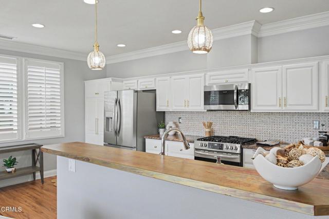 Nestled in the heart of Santa Barbara, this exceptional end-unit residence at 160 Via Lee presents a rare opportunity to own a slice of coastal luxury in one of the area's most desirable communities. Ideally positioned in the best location within the complex, this home captures breathtaking mountain views while offering privacy, tranquility, and convenience.Spanning approximately 2,299 square feet, this beautifully designed 4-bedroom, 3.5-bath residence showcases a seamless blend of modern sophistication and thoughtful craftsmanship. The open-concept floor plan is enhanced by soaring ceilings, engineered wood flooring, crown molding, and expansive windows that flood the home with natural light--creating a bright and inviting atmosphere throughout.At the heart of the home, the chef's kitchen is both functional and updated, featuring high-end appliances, abundant cabinetry, and generous counter space--ideal for both everyday living and entertaining. The adjoining living and dining areas flow effortlessly, perfect for hosting gatherings or enjoying quiet evenings at home.Each bedroom is generously sized, offering comfort and versatility, while the primary suite serves as a private retreat complete with a spacious walk-in closet and a spa-inspired ensuite bathroom featuring dual vanities and a soaking tub.Step outside to your own private oasis, where meticulously landscaped grounds, lush greenery, and a serene patio create the perfect backdrop for outdoor dining, relaxation, and entertaining. Enjoy stunning sunsets and embrace the quintessential Santa Barbara indoor-outdoor lifestyle.Additional highlights include a spacious two-car garage and ample guest parking.Located just minutes from downtown Santa Barbara and the iconic Pacific Ocean, this home offers unparalleled access to world-class dining, shopping, and recreation.Don't miss this rare opportunity to experience the very best of Santa Barbara living at 160 Via Lee--where elegance, comfort, and coastal beauty come together in perfect harmony.