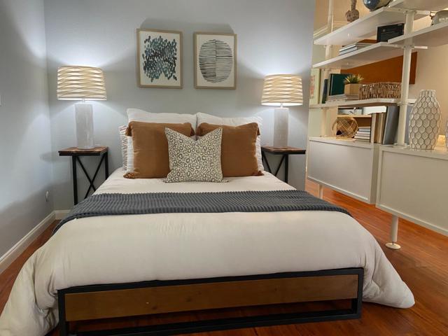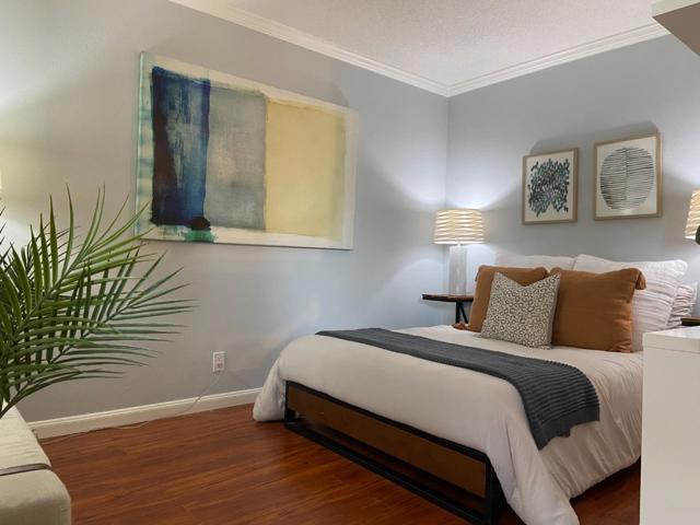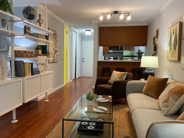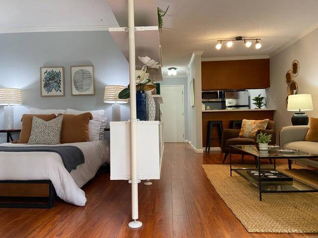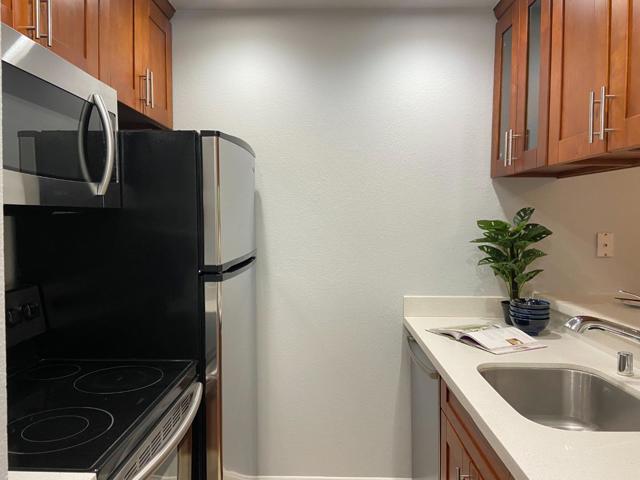 Welcome to this inviting studio retreat in the sought-after Shelter Creek community of San Bruno, where resort-style living meets everyday convenience. Lovingly maintained, this ground-floor home offers a warm, welcoming atmosphere with a true sense of home from the moment you step inside. The updated interior features granite kitchen countertops, stainless steel appliances, engineered laminate flooring, fresh paint, and an updated kitchen and bathroom. The kitchen showcases rich cherry shaker cabinetry, while the bathroom features quality tile work. A modern blue-grey palette with a curated designer accent adds style and personality throughout. Enjoy a walk-in closet with built-in organizer plus an additional entry closet for extra storage. Step out to a private patio surrounded by lush greeneryperfect for relaxing or morning coffee. The clubhouse is a short stroll away with easy access to fitness and amenities. Located in Building 3 with assigned parking space #73 in Garage 3. EV chargers nearby. Shelter Creek offers pools, tennis courts, and scenic walking paths. Close to SFO, BART, Caltrain, shopping, dining, and commute routes. HOA $537/month includes utilities, amenities, and parking.